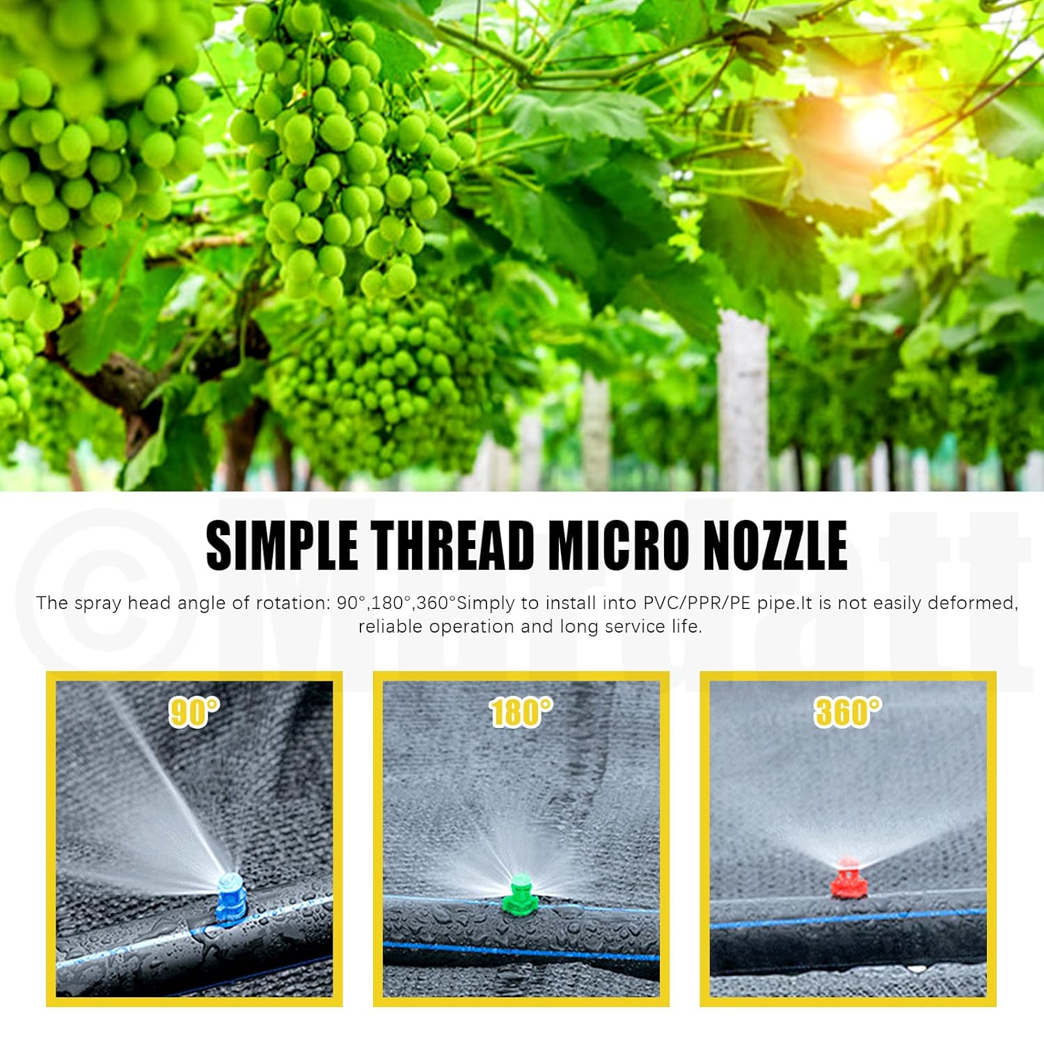 - 〖What You Will Get〗The irrigation fittings kit contains 30pcs 90 degree blue nozzles, 30pcs 180 degree green nozzles, 30pcs 360 degree red nozzles, 20pcs Single barbs, 20pcs Straight Barbs, 10pcs Tees, 10pcs 4-way coupling and 2pcs hole punch, totally 152pcs. All are packed in a transparent plastic box for easy storage and carrying.