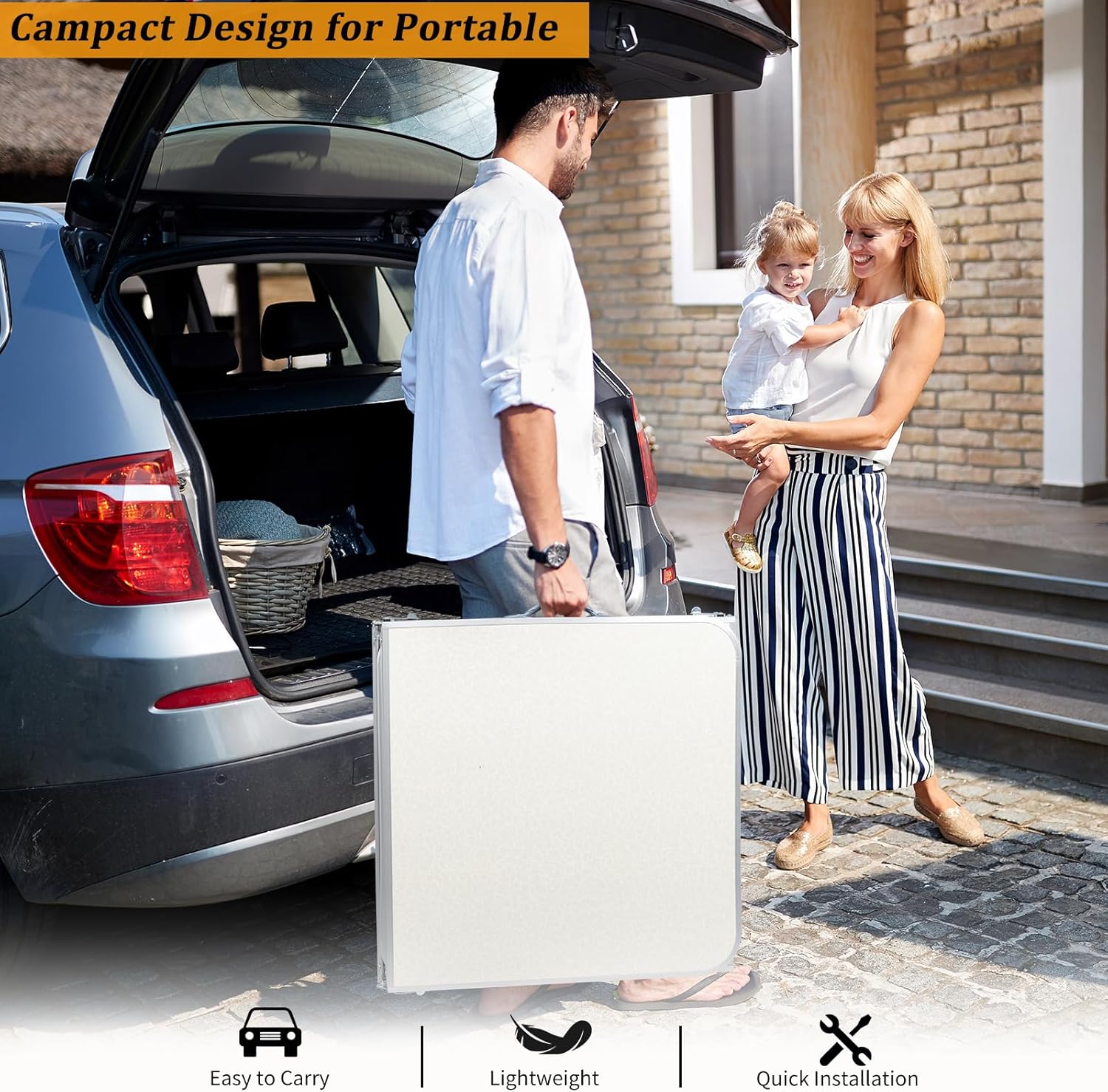 - 【CONVENIENT DESIGN】The rv outdoor table can be easily opened in seconds with just a few simple steps. Quickly fold with the side locks and carry handle. The desktop features fiberboard that is easy to clean stains only by swiping. The 6ft folding table provide convenience in a variety of places for you