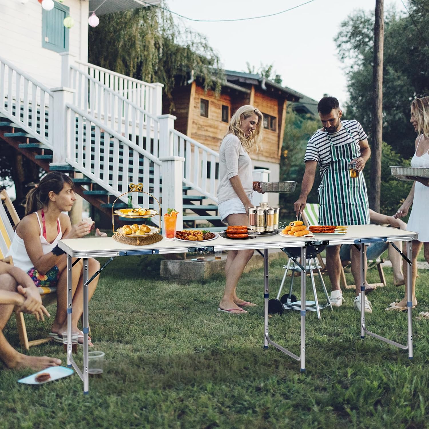 Outvita 6ft Portable Folding Camping Table, Outdoor Waterproof Adjustable Height Table, Aluminum Lightweight Suitcase Foldable Table for Picnic BBQ Beach Dining
