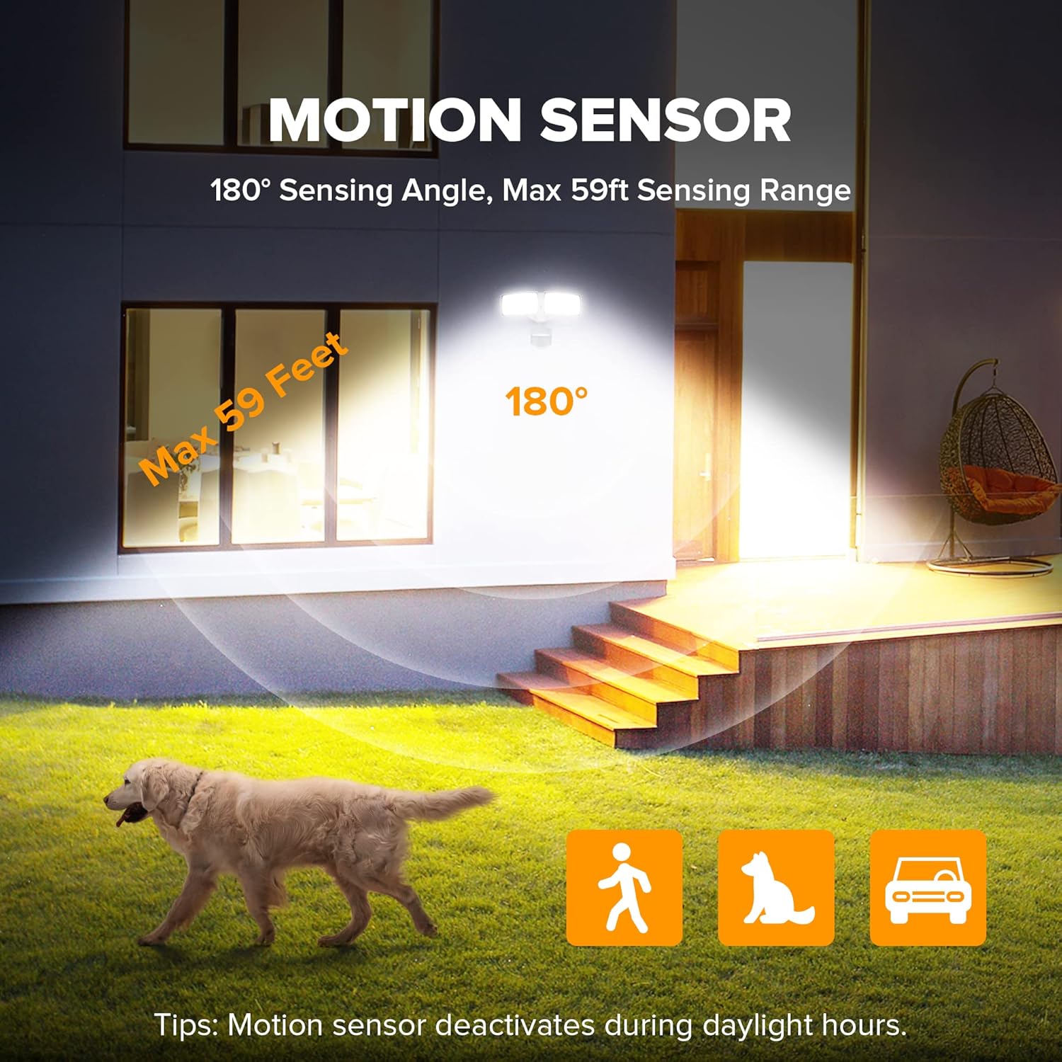 LUTEC 38W 3500 Lumen LED Motion Activated Integrated Dual-Head Floodlight Outdoor with Motion Sensor, 5000K Daylight, Dusk to Dawn, Exterior Security Wall Light for Patio, Garden, Yard(White)