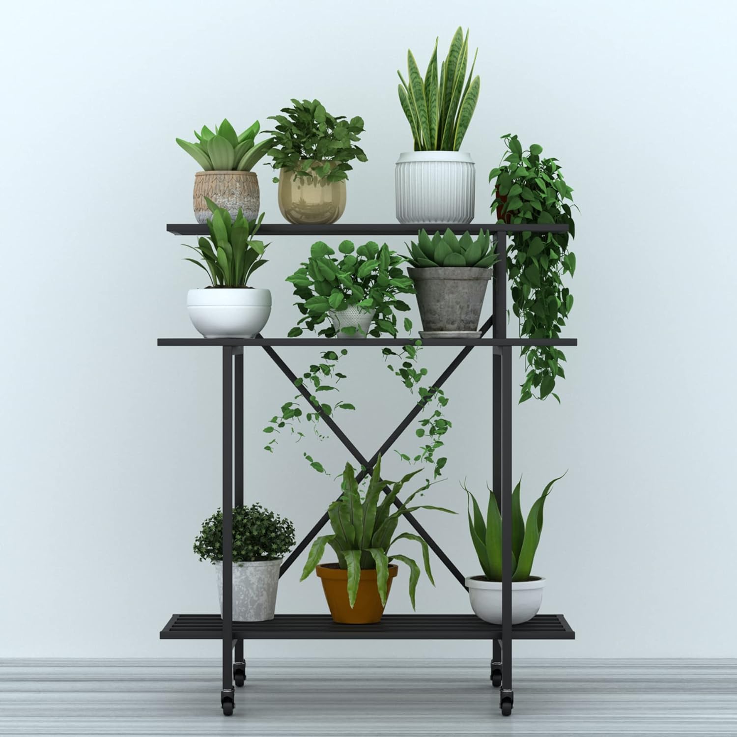 Zhongma 3 Tier Sturdy Plant Stand with Wheels, Heavy Duty Plant Holder for Home Indoor and Outdoor, L35.43 xW17.32 x H41.73 inch