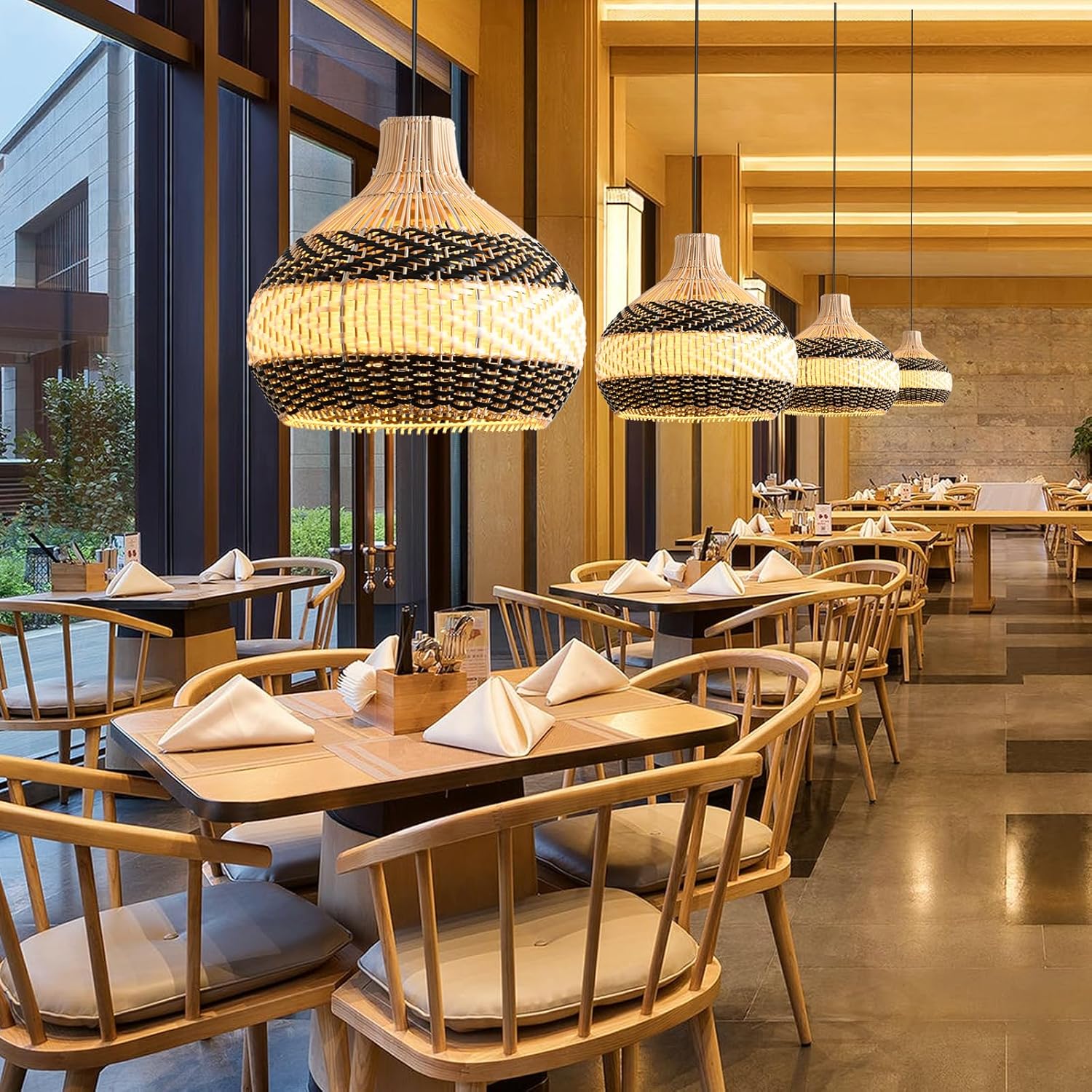 - 【 Rattan Pendant Light Excellent Design】Natural rattan and faux rattan hand-weave craft, the pendant light shade are made of natural rattan and black and white faux rattan materials. The lights are hand woven with by rattan craft superb skills bamboo artists. Decorated with classic tropical style elements, creates a wonderfully new look