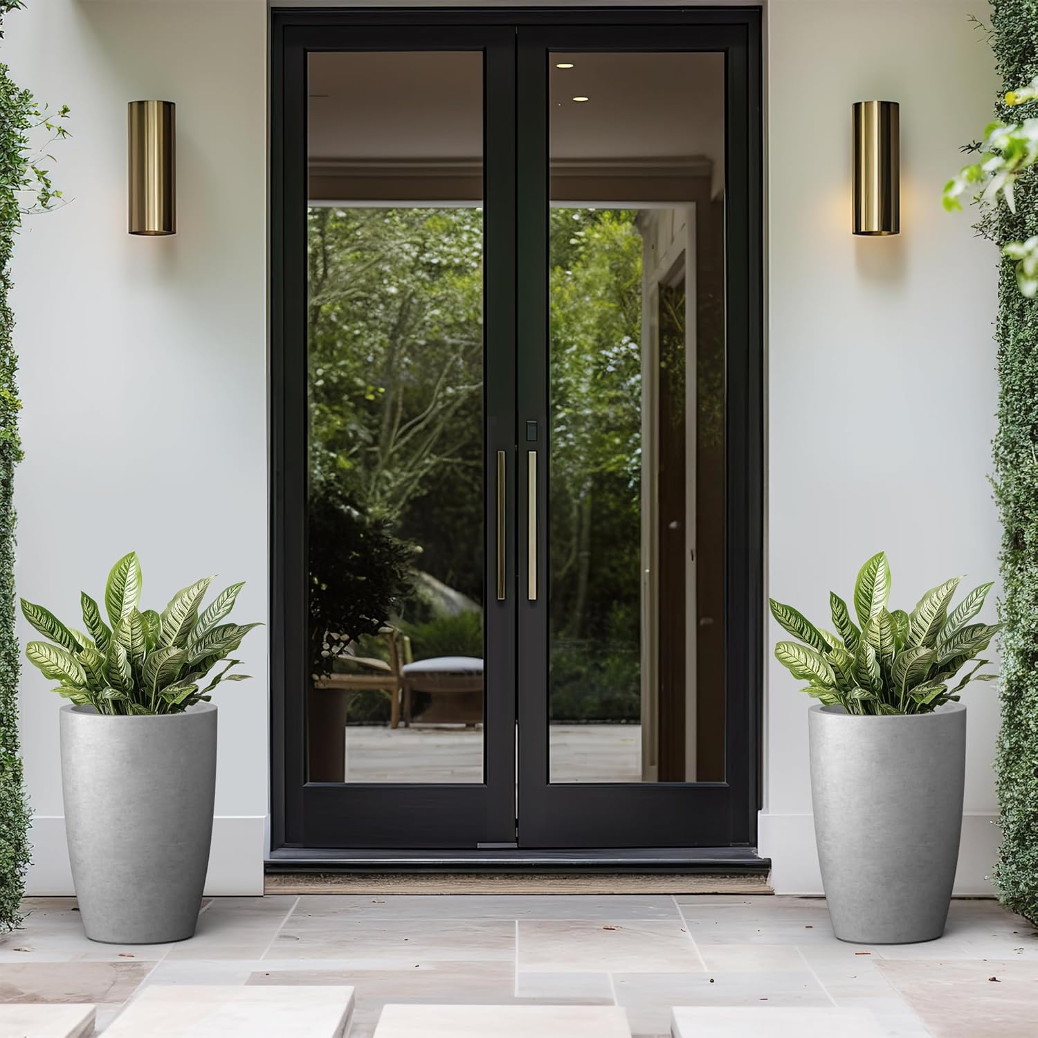 Kante 18.1" H Tall Round Concrete Planter for Outdoor Indoor, Modern Decorative Plant Pots with Drainage Hole & Rubber Plug for Home & Garden Natural Concrete
