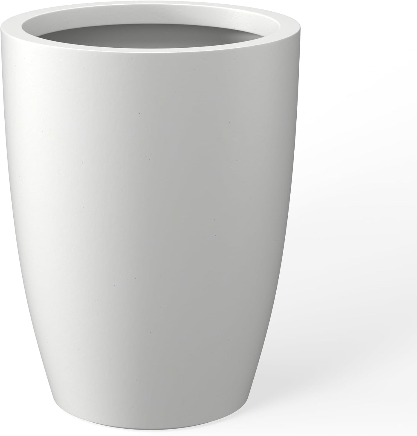 Kante 18.1" H Tall Round Concrete Planter for Outdoor Indoor, Modern Decorative Plant Pots with Drainage Hole & Rubber Plug for Home & Garden Pure White