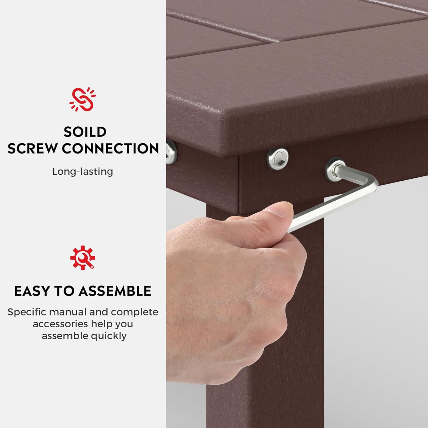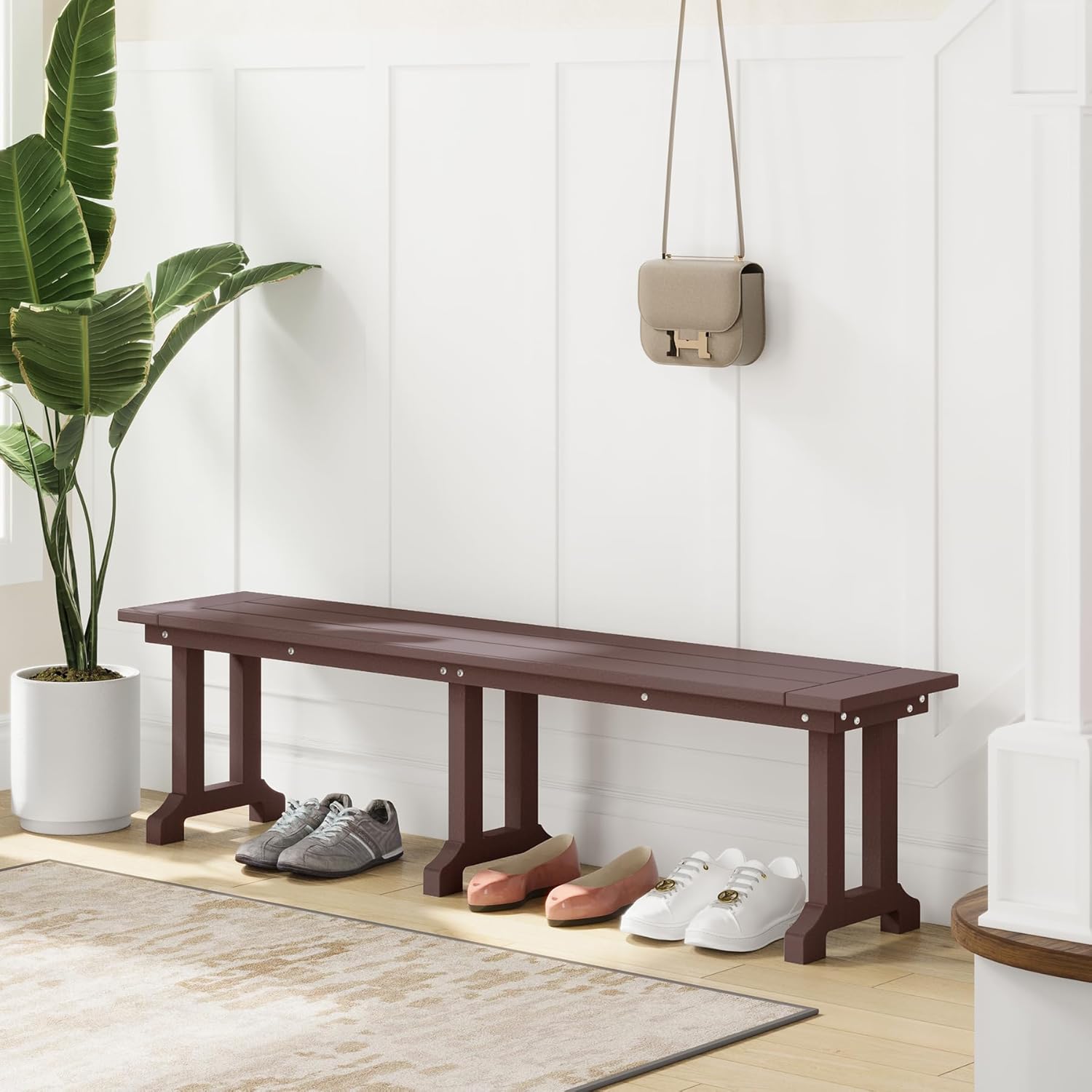 Outdoor Benches Weatherproof, Park Long Bench Poly Lumber Backless for Entryway Front Porch Garden Bench Seat for Patio, Dark Brown