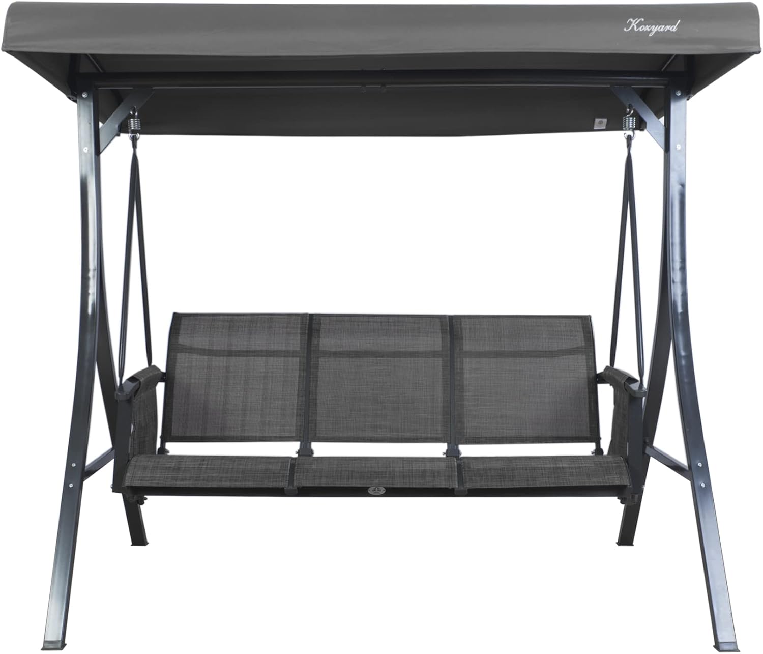 Kozyard Brenda 3-Seat Patio Swing Chair, Outdoor Porch Swing Glider with Adjustable Canopy, Side Pouches, Breathable Seat and Back, for Garden, Poolside, Backyard (Gray)
