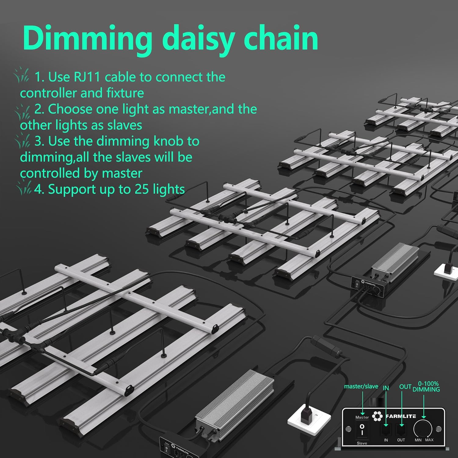 - 【Daisy-Chain Dimming】This grow light for indoor plant has a dimming button to adjust the light intensity required for different plant growth stages.The daisy-chain function allows you to connect up to 25 LED grow lamps and can be dimmed simultaneously.