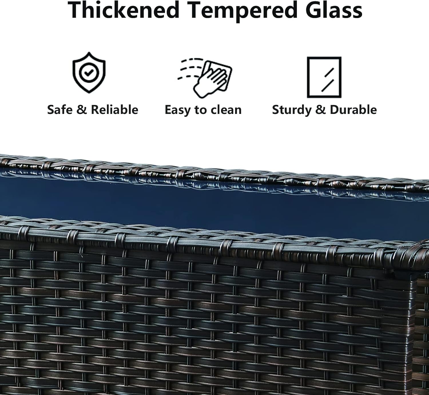 - QUALITY & DURABLE- Constructed with heavy duty powder-coated steel frame and all-weather wicker,this outdoor patio coffee table is water-proof and rust-proof,ideal for long-lasting outside area use.Tempered glass table top is easy to clean.