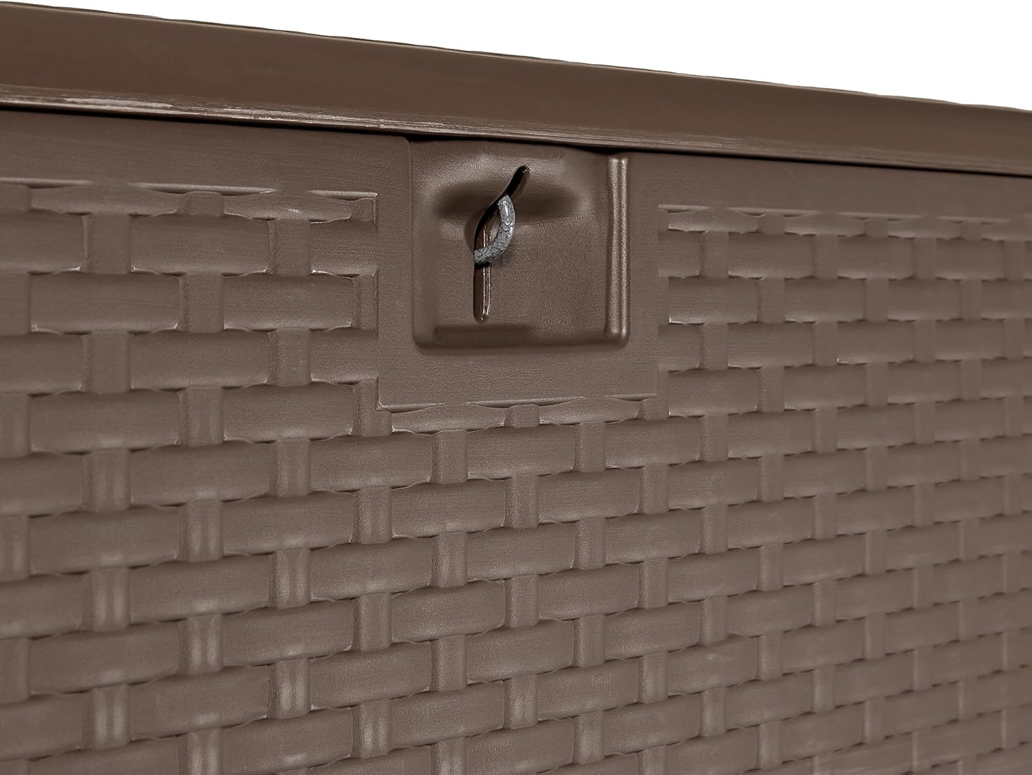 - ELEGANT STYLE: The charming wicker pattern in a brown finish complements various outdoor decors, adding a touch of sophistication to your patio storage, garden, or backyard area