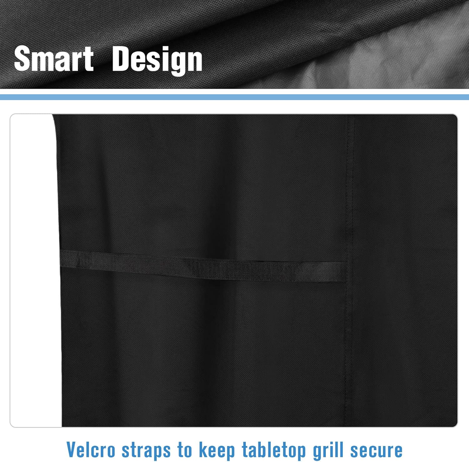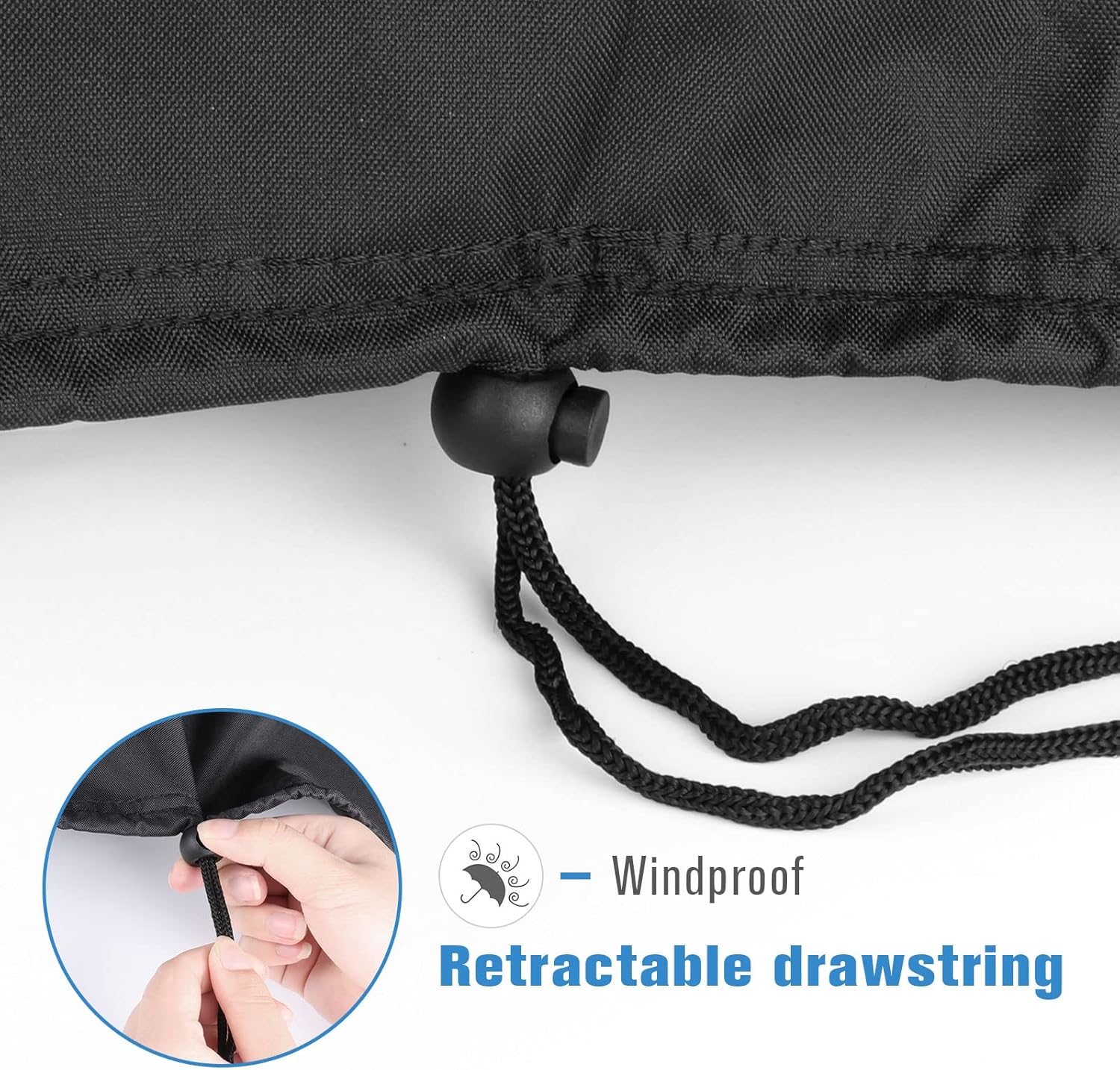 - Windproof: There is a retractable drawstring at the bottom of the cover and a Velcro on each side to make the cover fit the tabletop grill better and prevent the cover from being blown away by strong winds
