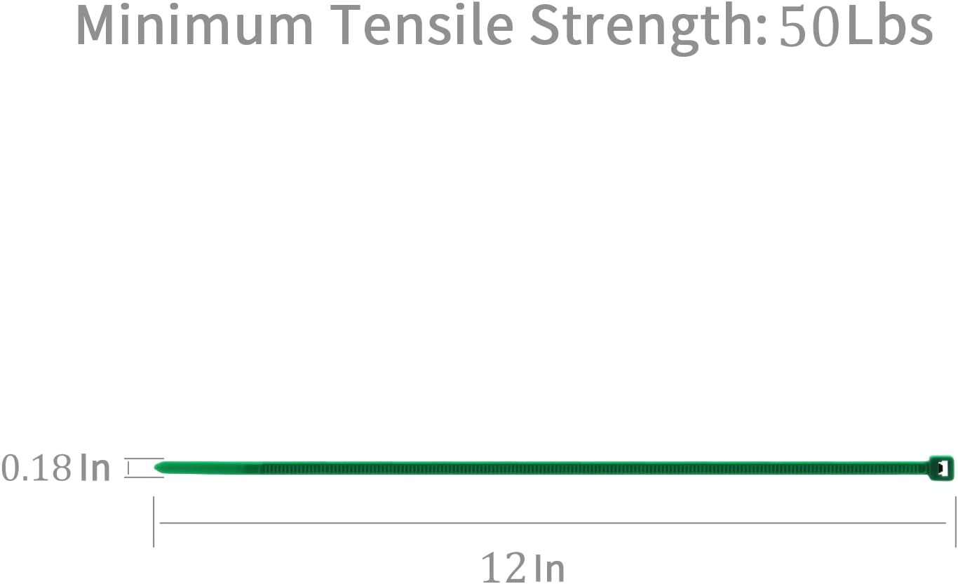 XINGO 100PCS Cable Zip Ties Heavy Duty, Premium Nylon Plastic Wire Ties with 50 Pounds Tensile Strength, Self-Locking Black Nylon Zip Ties for Indoor and Outdoor (12 inch, Dark Green)