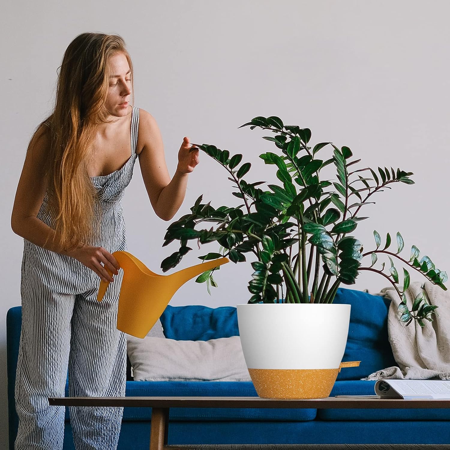 WOUSIWER 10 inch Self Watering Planters, 2 Pack Large Plastic Plant Pots with Deep Reservior and High Drainage Holes for Indoor Outdoor Plants and Flowers, White with Terracotta