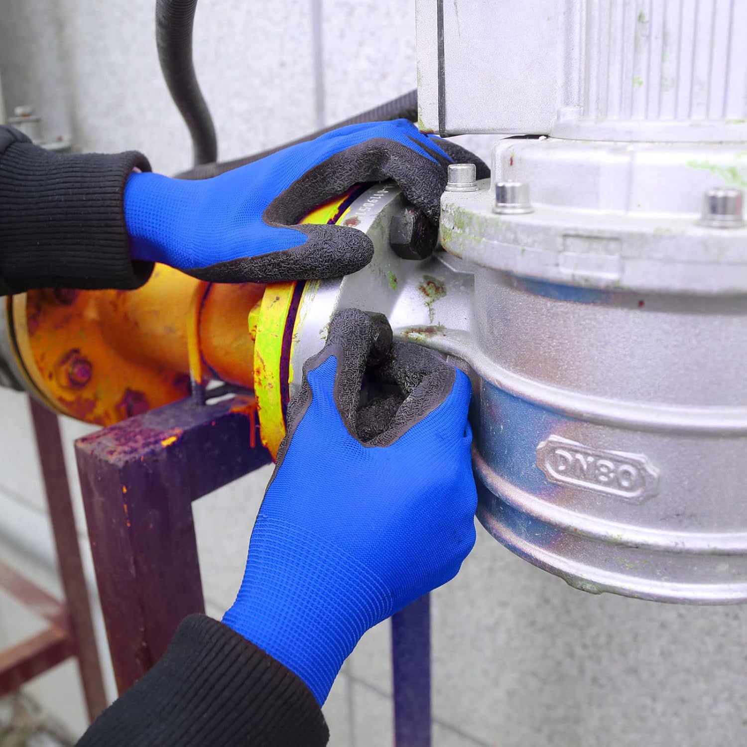 Evridwear Crinkle Latex Rubber Hand Coated Safety Work Gloves for Men Women General Multi Use Construction Warehouse Gardening Assembly Landscaping (X-Large,Blue- 12Pair)