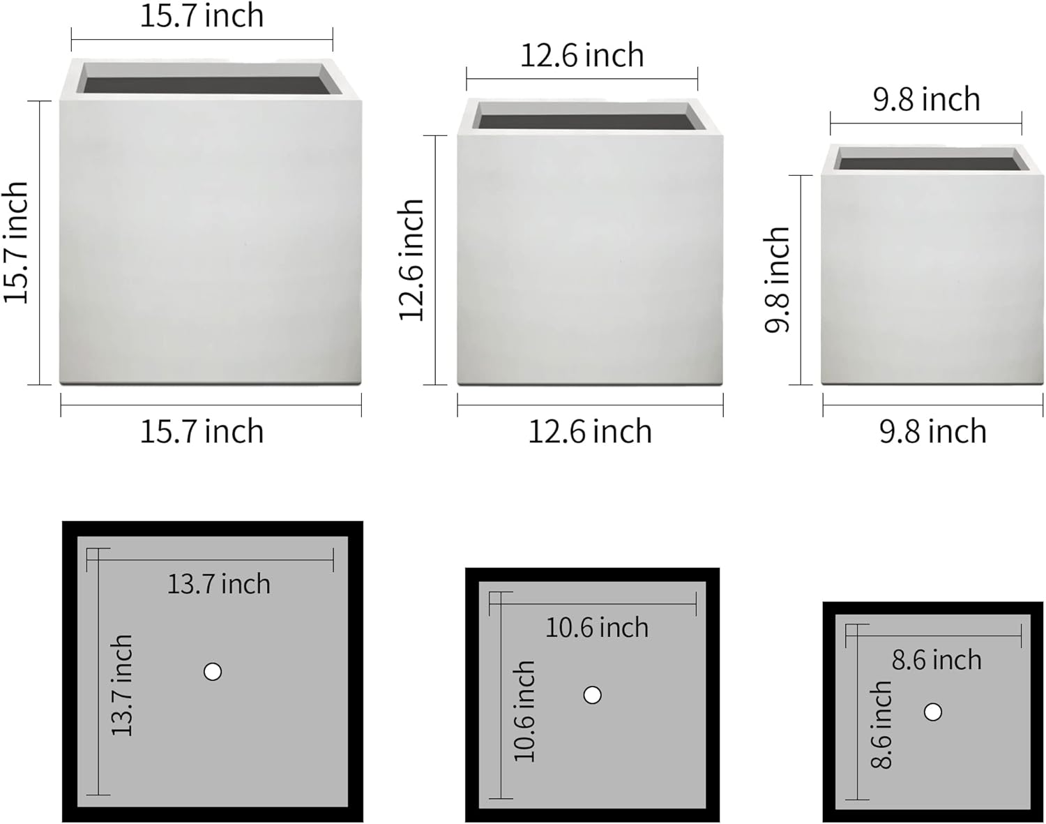 Kante 16",12",10" Square Concrete Planters Set of 3 for Outdoor Indoor Home Patio Garden, Large Plant Pot with Drainage Hole and Rubber Plug, Pure White