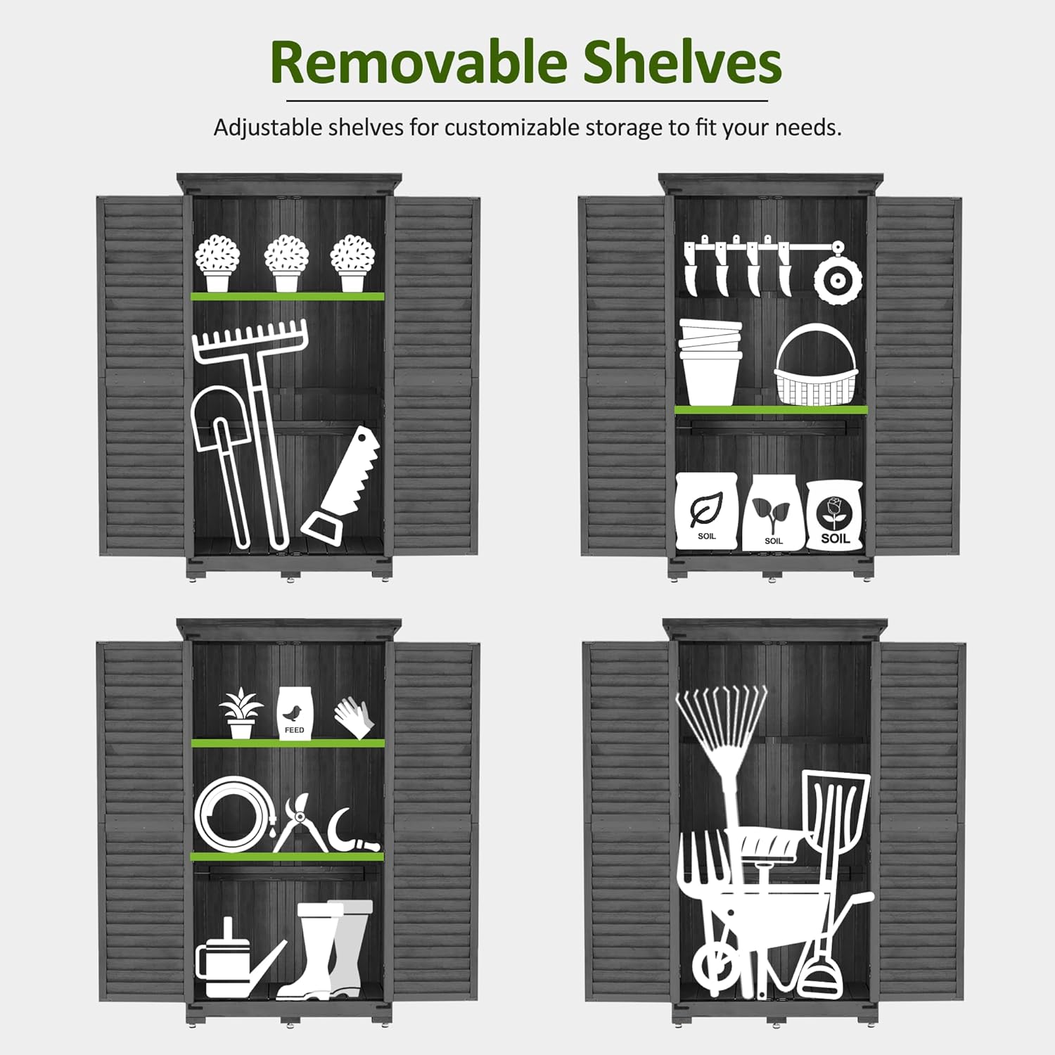 - Fir Wood Material: The vertical storage shed is made of high-quality fir wood, and the exterior has been polished to express a rustic style. Besides, the wooden shed is easy with other décor and natural settings.