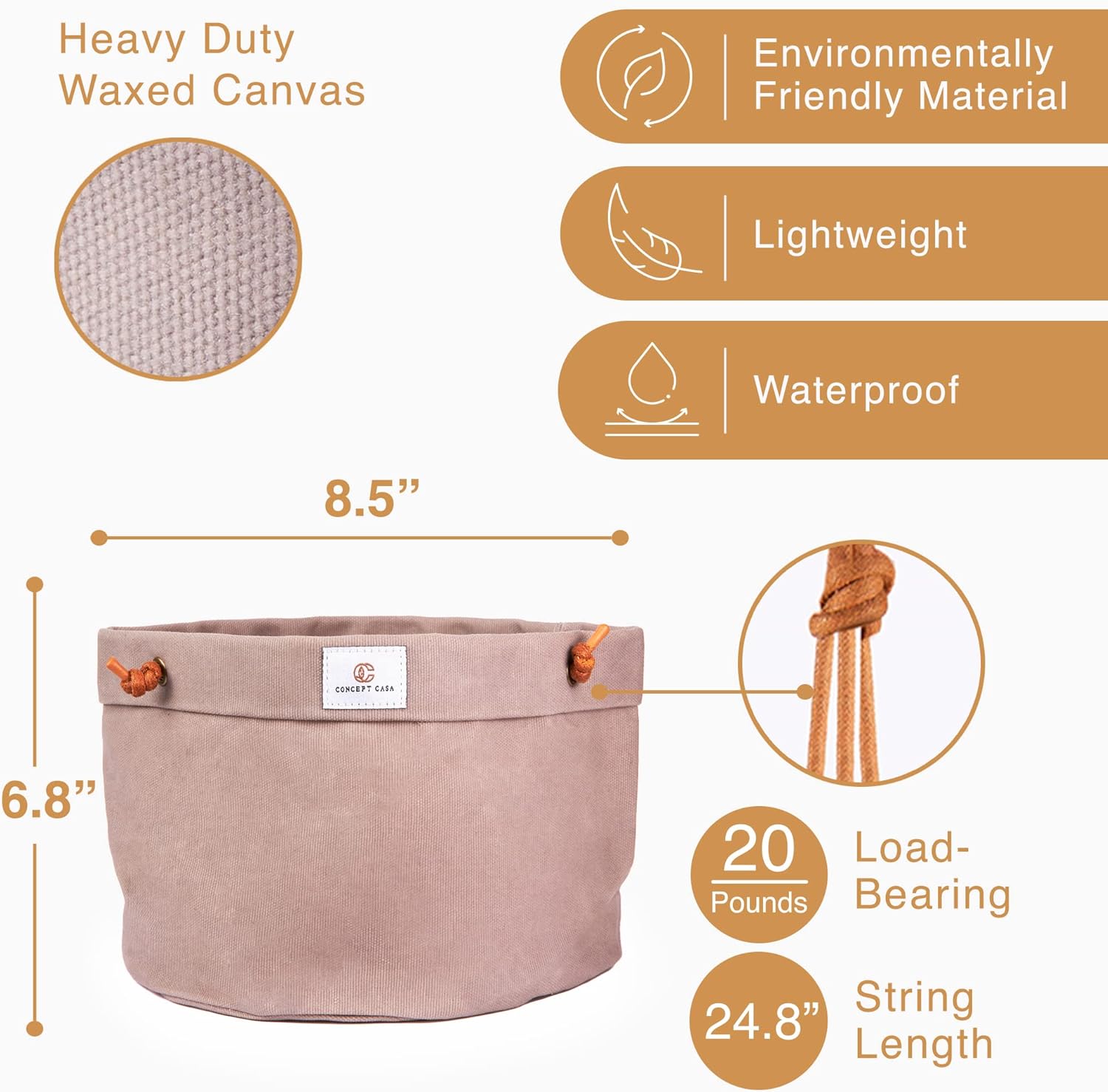 Large Waxed Canvas Handmade Hanging Planter for Indoor/Outdoor Plants, Hanging Basket Plant Holder Stone Gray with Hook