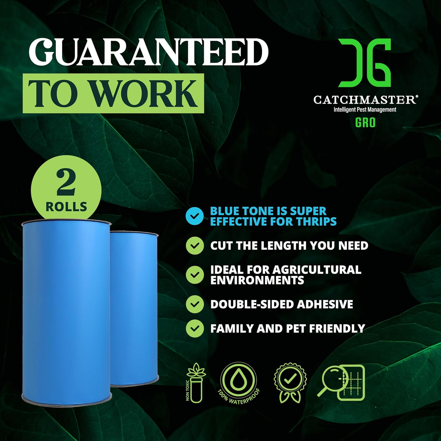 Catchmaster XL AG Roll 2PK, Double Sided Adhesive Fly Tape Strips, Fungus Gnat Sticky Trap for Greenhouse, Garden, Nursery, Pest Control Gardening Supplies, Pet Safe Insect Trap, 328' x 12", Blue
