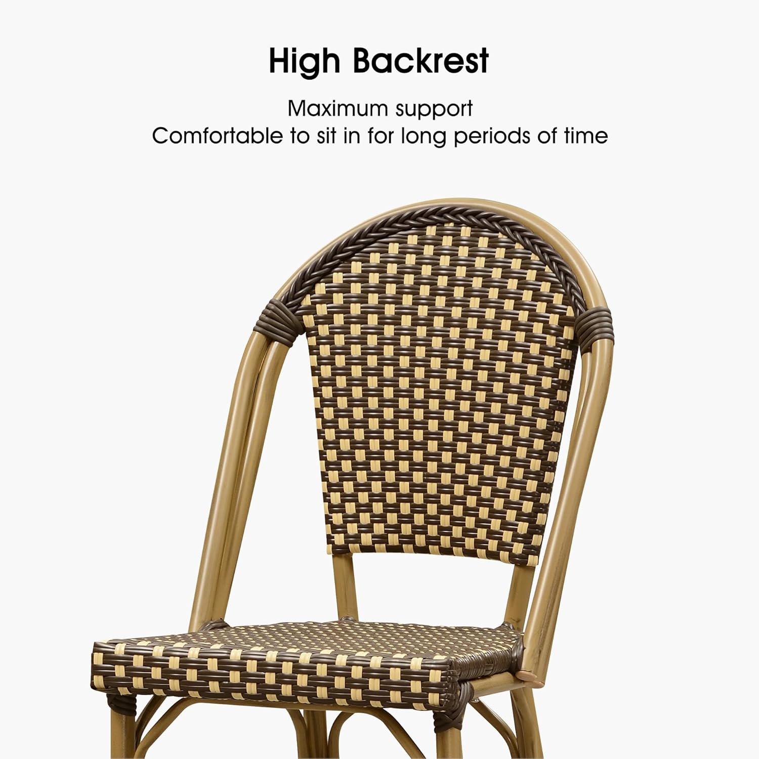 PURPLE LEAF French Counter Height Bar Stool Set of 2 25" Bamboo Print Finish Patio Bar Chairs with Back Rattan Bar Chairs French Bistro Set for Kitchen Outdoor Counter Stool Brown