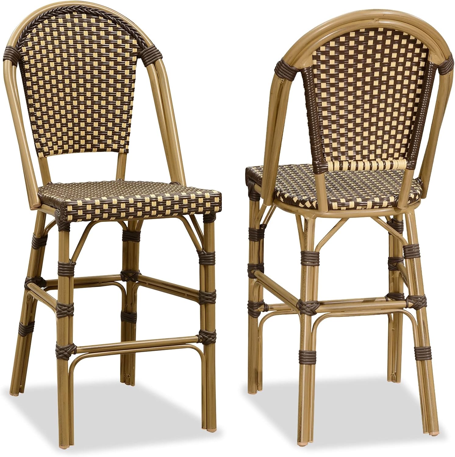 - Bamboo Print Finish: It's made of powder-coated aluminum that's weather-resistant and rust-resistant. Then a bamboo-look finish is hand applied to make these aluminum bar chairs look bamboo.