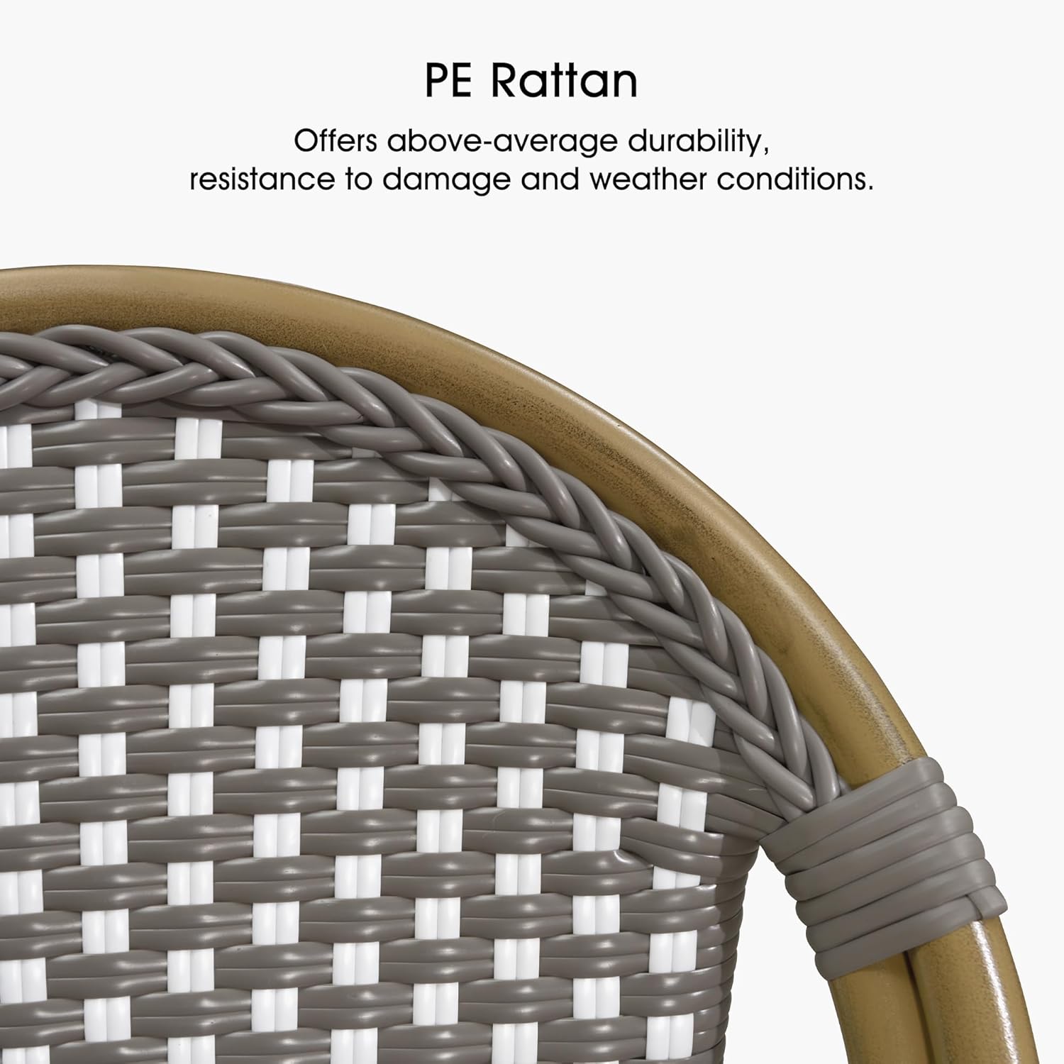 PURPLE LEAF French Bar Stool Set of 2 Bamboo Print Finish Patio Bar Stools with Back Rattan Chairs Wicker Bar Height Stool 30" with Footrest Kitchen Island Stools Outdoor Barstool Grey
