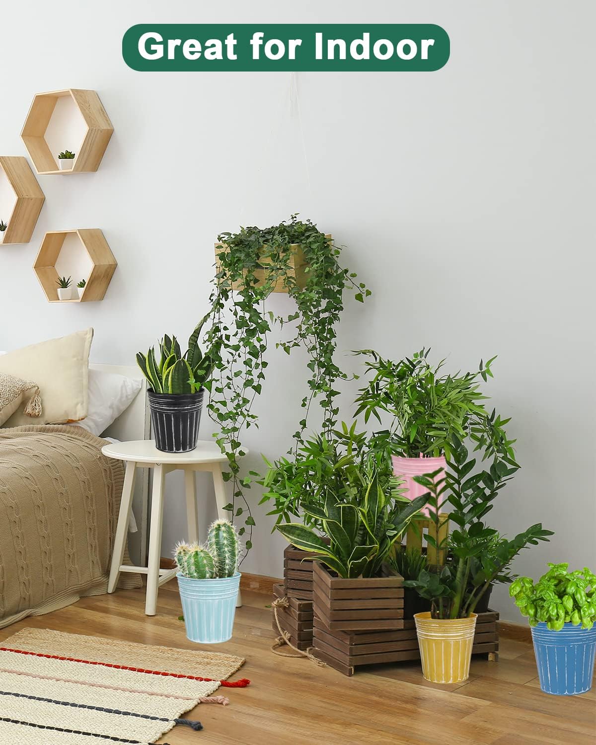 - 【Premium Material】These plant pots are made of high-quality galvanized metal, offering excellent rust and corrosion resistance, making them suitable for both indoor and outdoor use, windowsill, living room, kitchen, balcony, garden, and more.