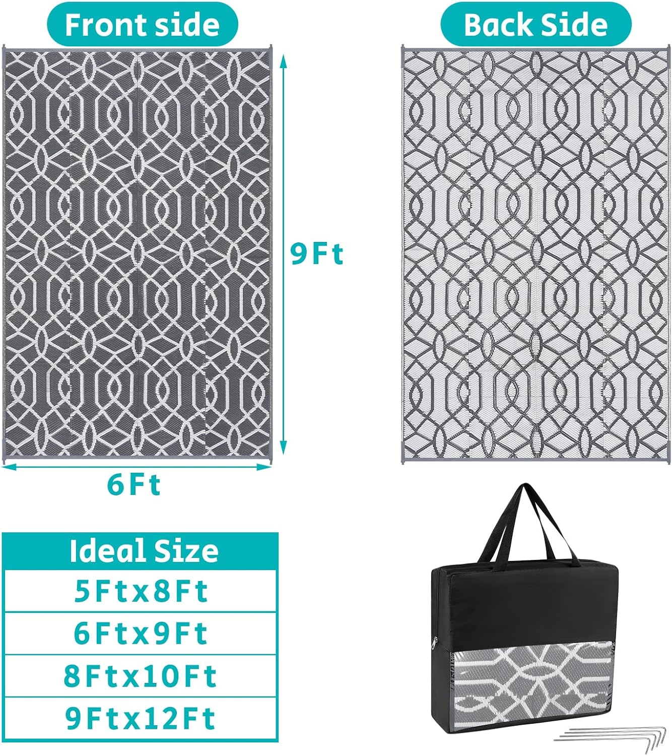 - Reversible Outdoor Rugs: Featuring a classic moroccan pattern on both sides, this 6x9 ft outdoor area rug allows you to instantly refresh your patio, porch, backyard, deck, RV campsite. And this outdoor deck rug is reversible, two-sided design allows you to have two different looks,both sides can blend perfectly with nature and look very full and comfortable.