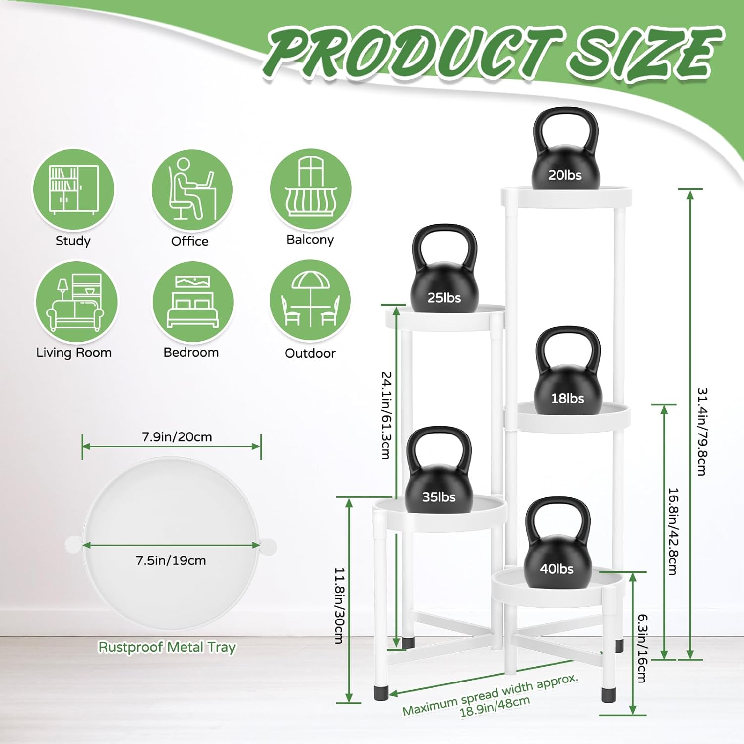 - 7.9-Inch Wide Trays with Rim: This tall plant stand features 7.9-inch round trays, suitable for pots up to 7.5 inches wide. Each tray is designed with raised edges that guard against spills and tipping, keeping your plants safe and steady