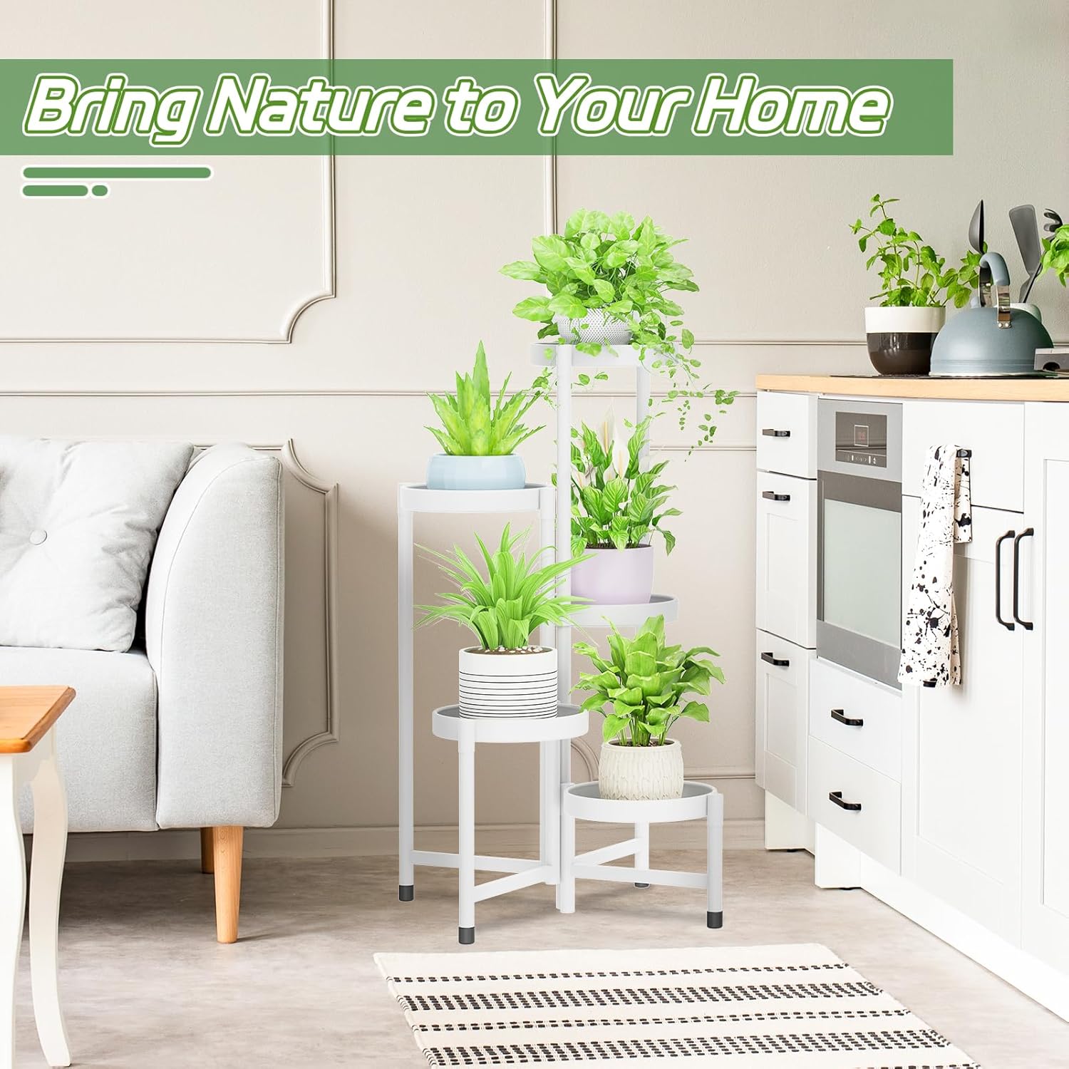 - Tiered Trays for Growth: With a tiered structure, the tiered plant stand keeps leaves well spaced for healthy growth. Each plant can catch sunlight from multiple angles, helping them thrive and creating a vibrant and flourishing green display
