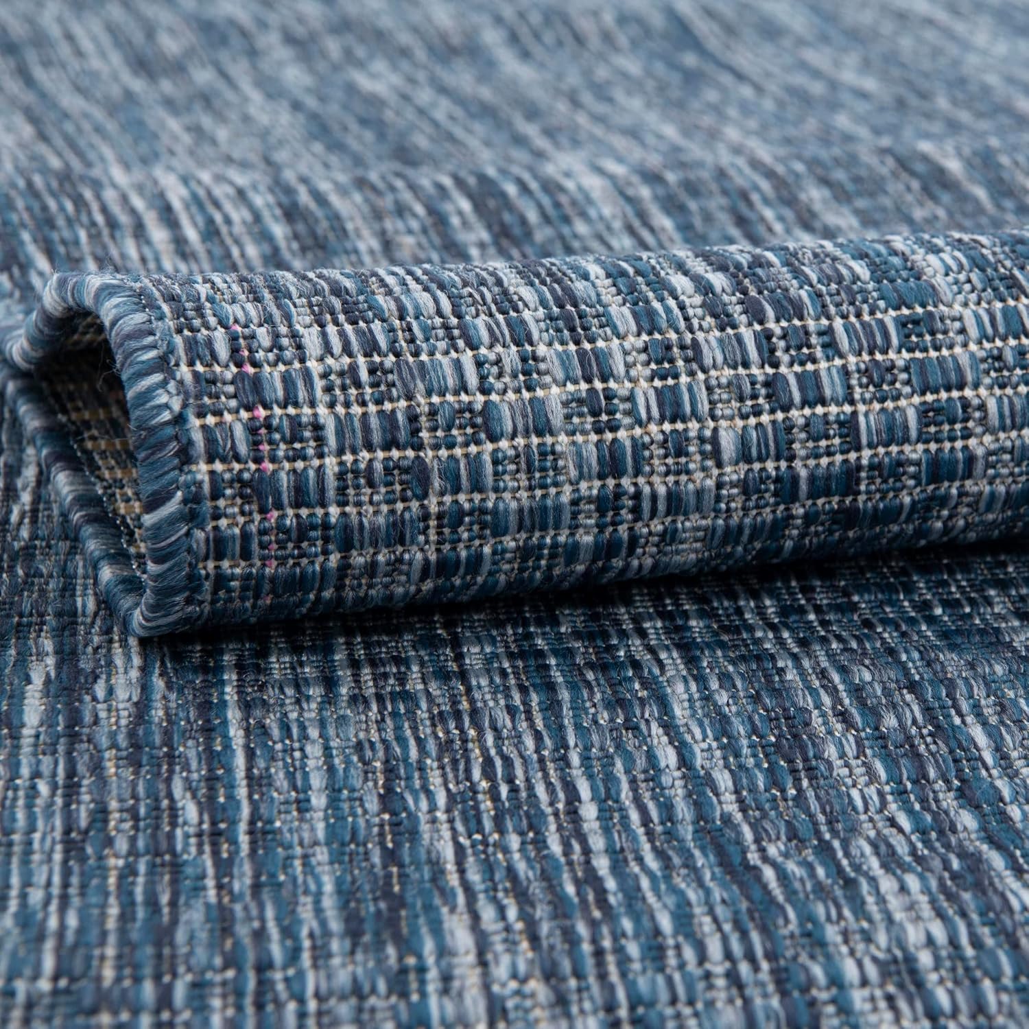 Unique Loom Collection Casual Transitional Solid Heathered Indoor/Outdoor Flatweave Area Rug (13' Round, Blue/Navy Blue)