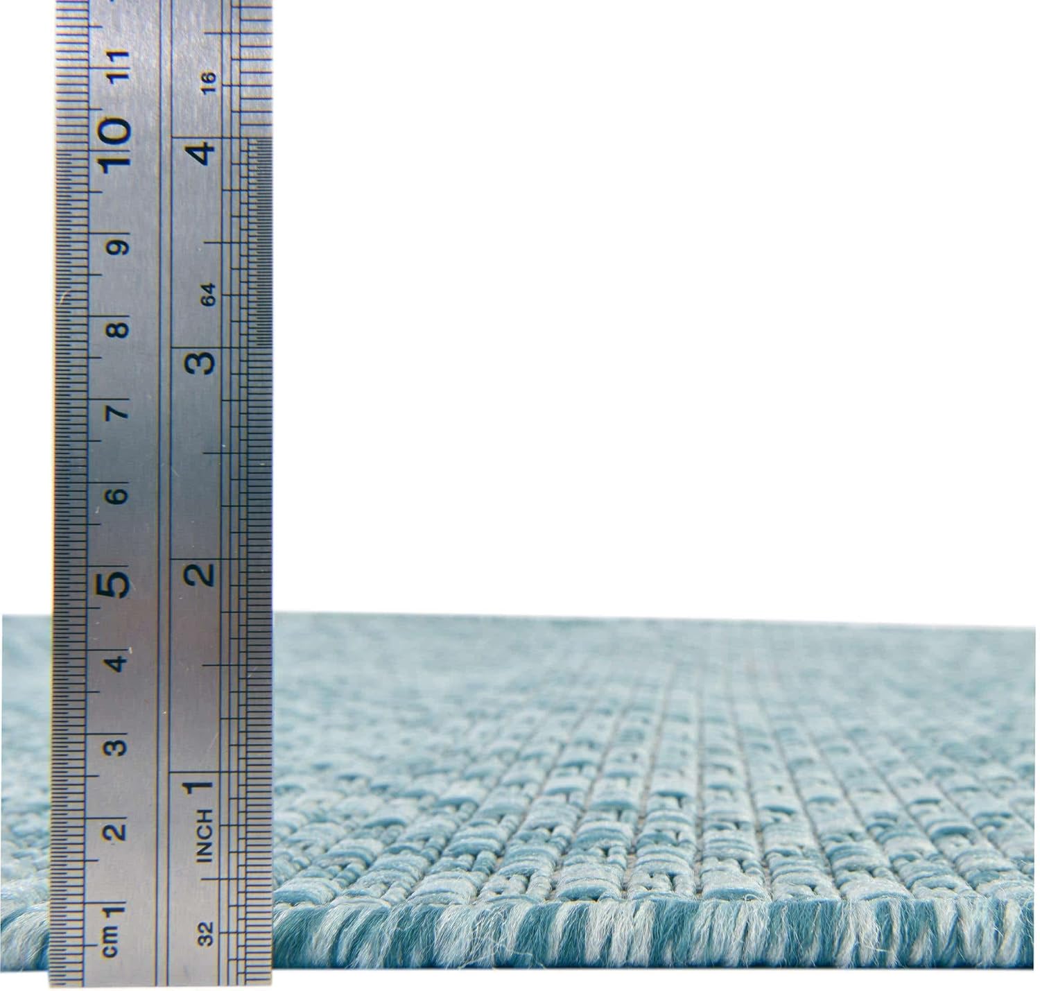 Unique Loom Collection Casual Transitional Solid Heathered Indoor/Outdoor Flatweave Area Rug (2' x 8' Runner, Aquamarine/Ivory)
