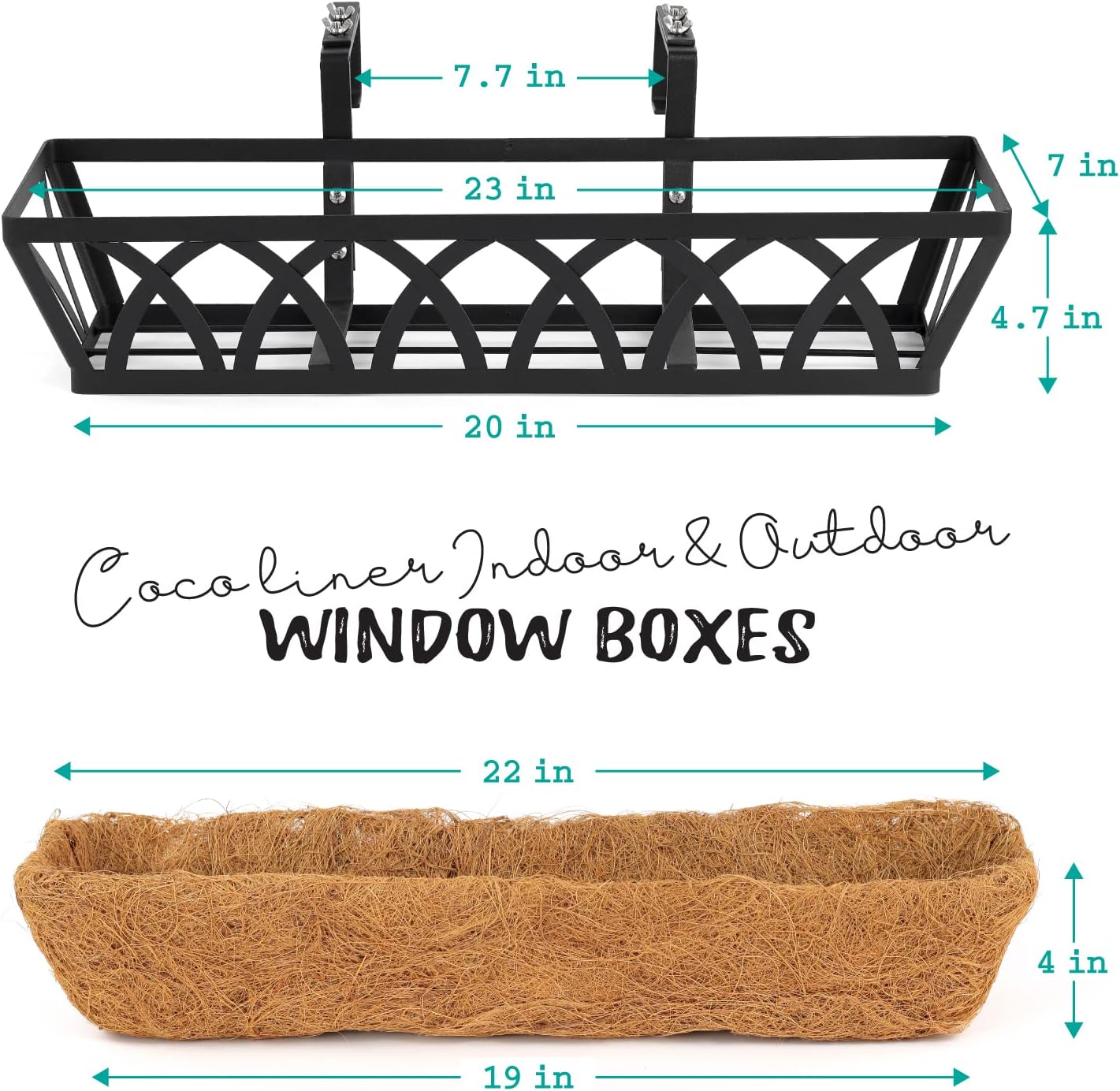 Window Box Railing, 24 Inch Black Metal Hanging Flower Planter Basket with Coco Liner for Outdoor Balcony Porch Fence Patio for Home, Office and Hotel (Black - 2 Pcs/Set)