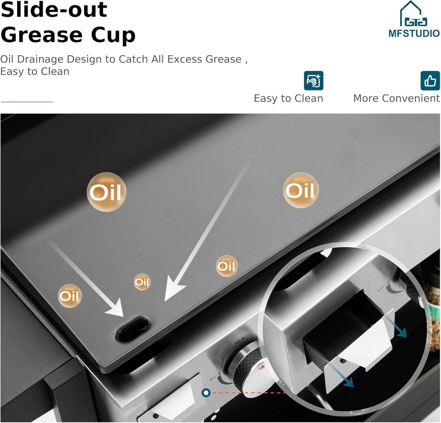 MFSTUDIO 27 Inch Flat Top Propane Gas Griddle Grill, Ceramic Coated Cast Iron Pan, Outdoor Flattop Grill with Lid for Cooking