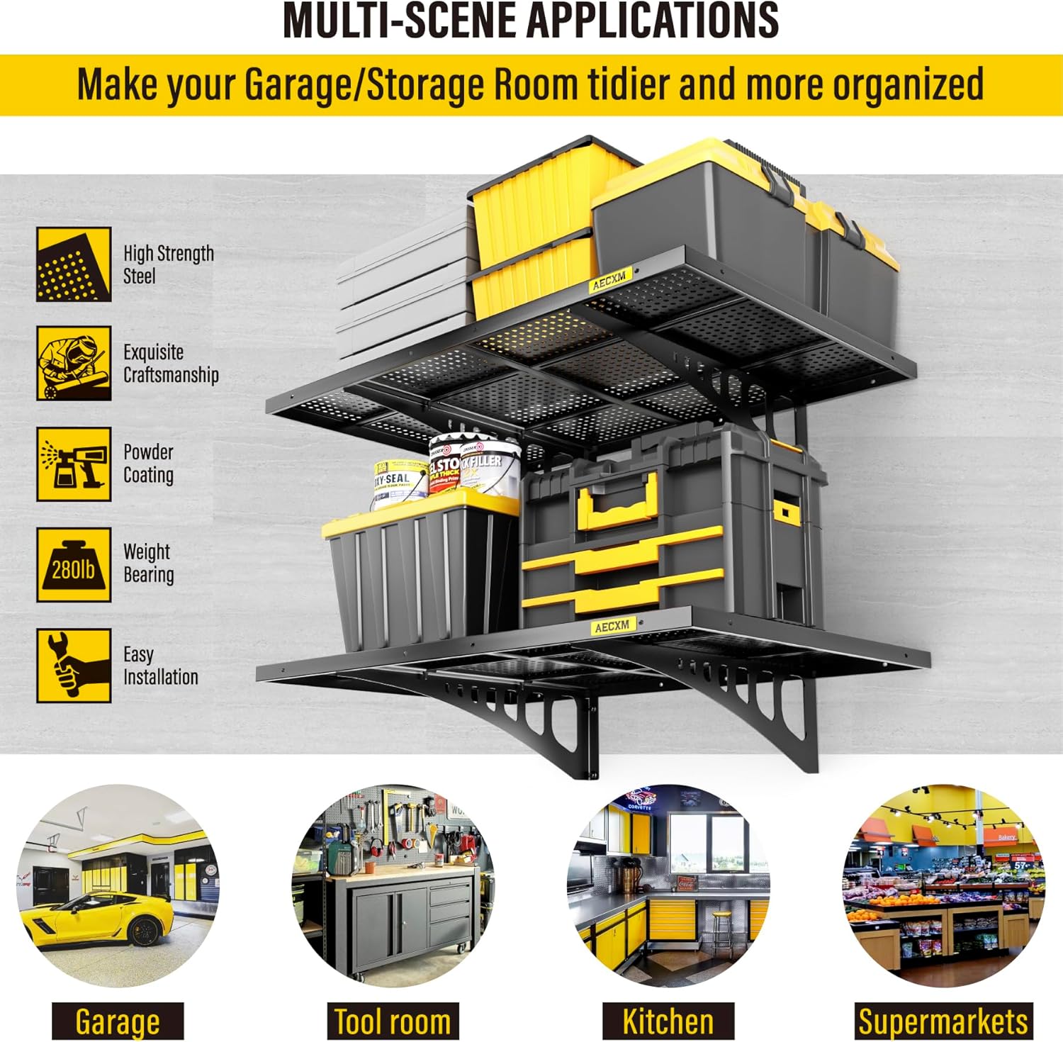 - Premium Craftsmanship: This garage wall shelving is crafted from a single steel sheet, precision-stamped and folded for strength. Unique high-density hole design enhances functionality while delivering a sleek, modern aesthetic