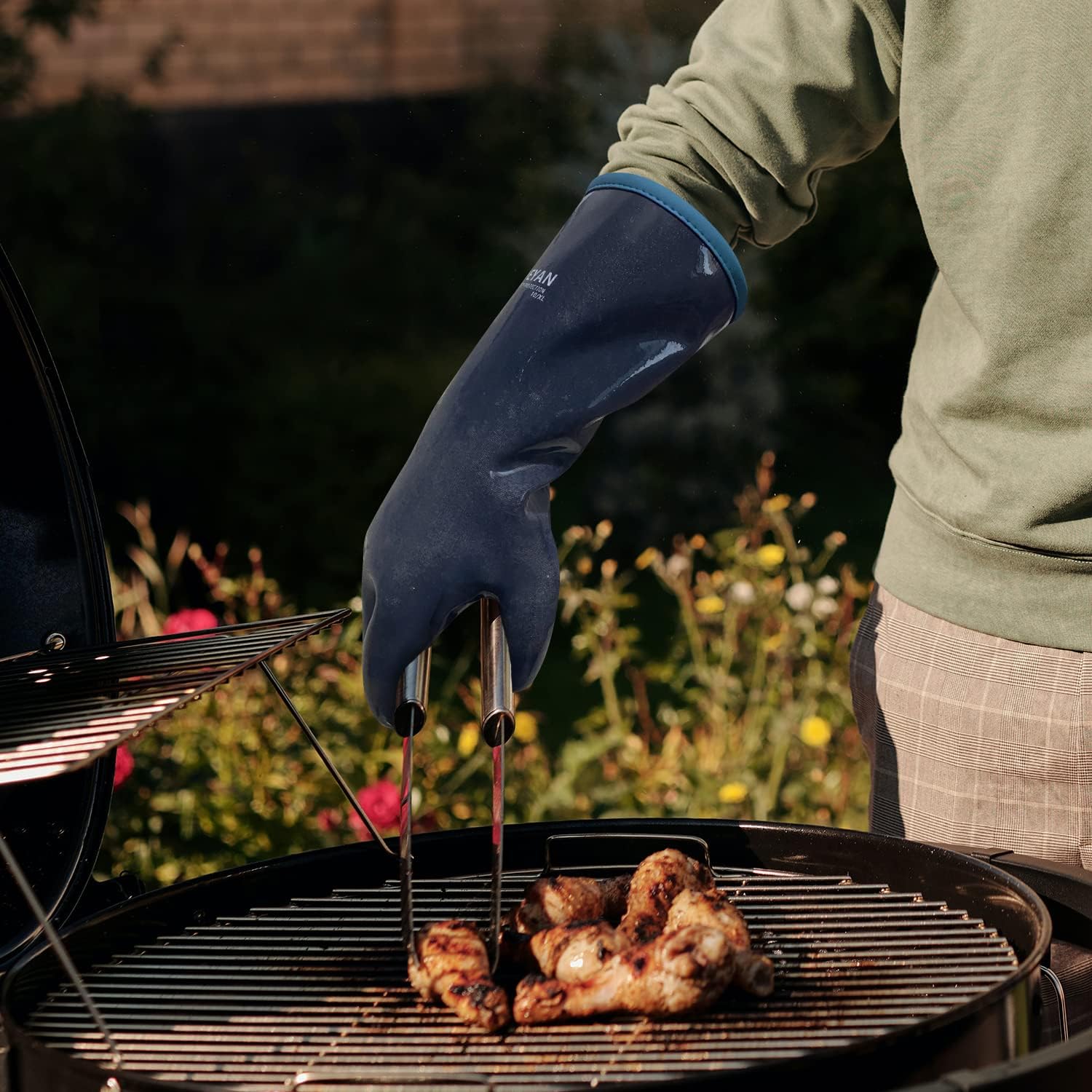 - Pro design: DEYAN BBQ gloves are made of two materials. The outer layer is non-slip, waterproof, and heat-resistant food-grade silicone. The inner layer is cotton, which makes your hands more comfortable and prevents allergies.