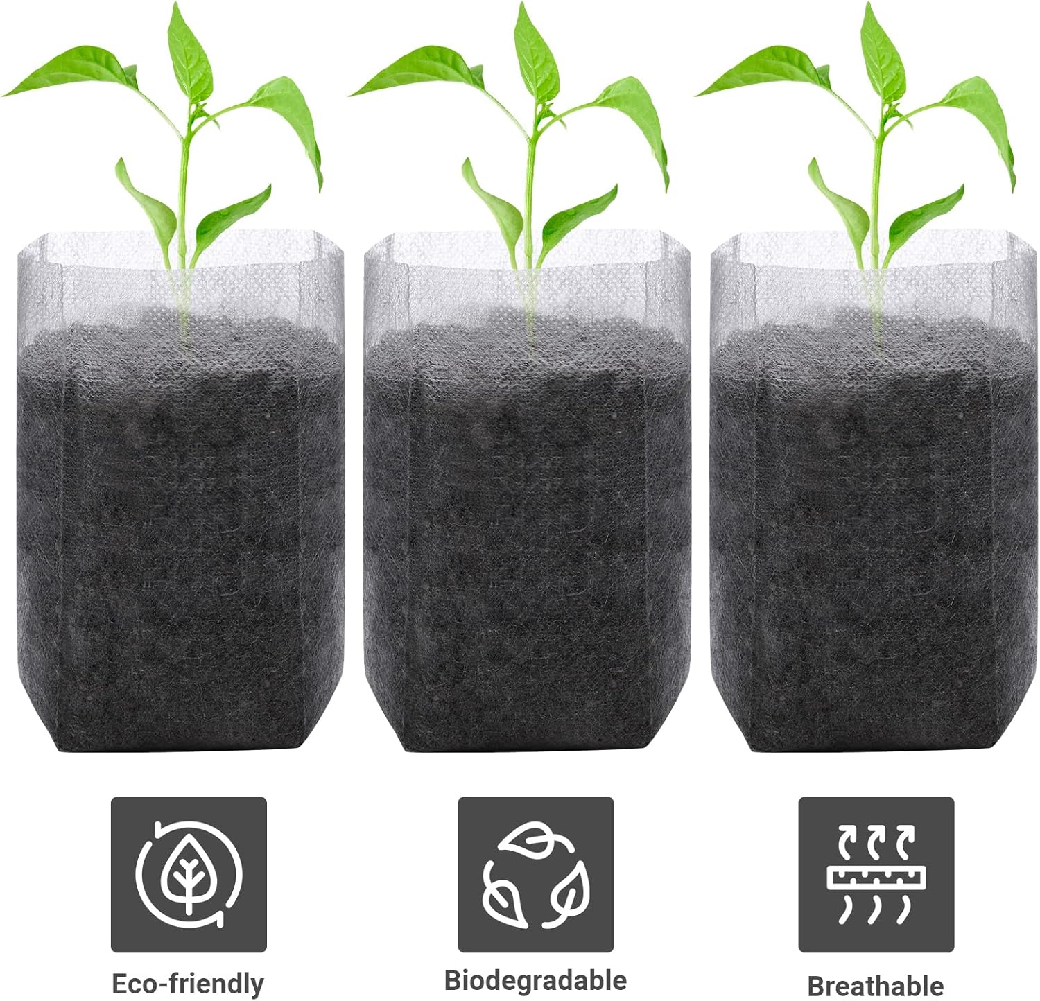 - 【HIGH SEEDING SURVIVAL RATE】The biodegradable plant bags has a small hole design, good drainage, air permeability, nutrient and moisture can be absorbed easily; biodegradable, don't need to remove the bag when transplanting, increase seedling survival rate.