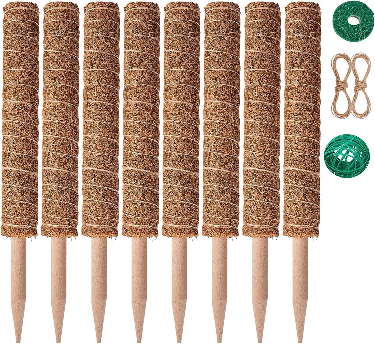 - GENTLE PLANT SUPPORT STAKES - Coconut fiber is gentler on plants than plastic materials, and the moss sticks can provide a good grip for aerial rooting. Moss poles are ideal supports for a variety of indoor and outdoor climbing plants, creepers, creeping plants, especially suitable for monstera, money plants, climbing vines, creepers, ivy, pothos, vanilla, philodendron, chlorophyll plants, small leaf vines, and houseplants