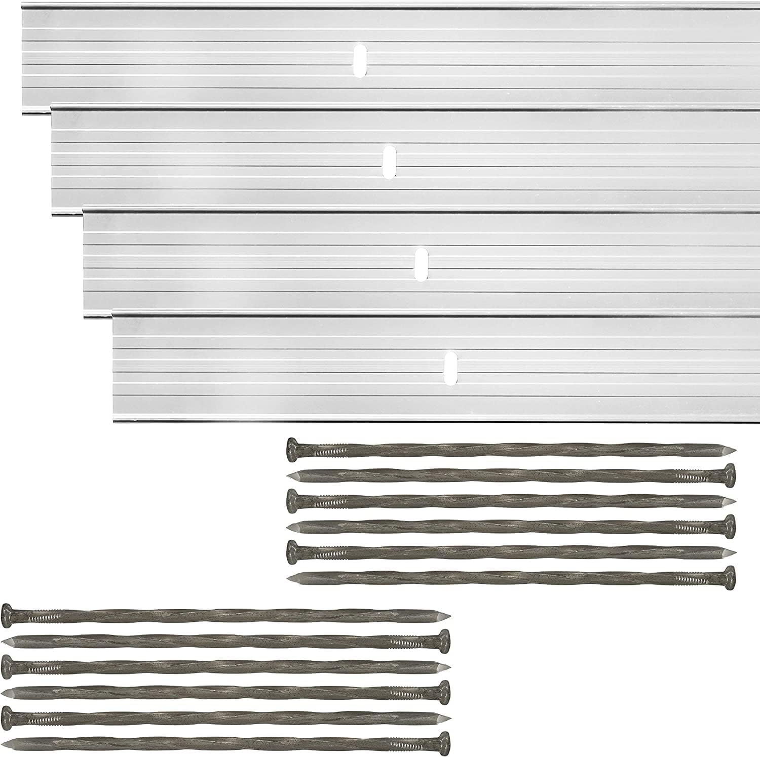 - KIT INCLUDES: Each kit includes 8 Mill Finish (Natural Aluminum) 6ft strips and 24 spikes; Create clean, crips lines and defined borders in your lawn, garden, and flowerbeds or keep soil, fertilizer, and rocks in their place with our simple, easy to use metal edging system