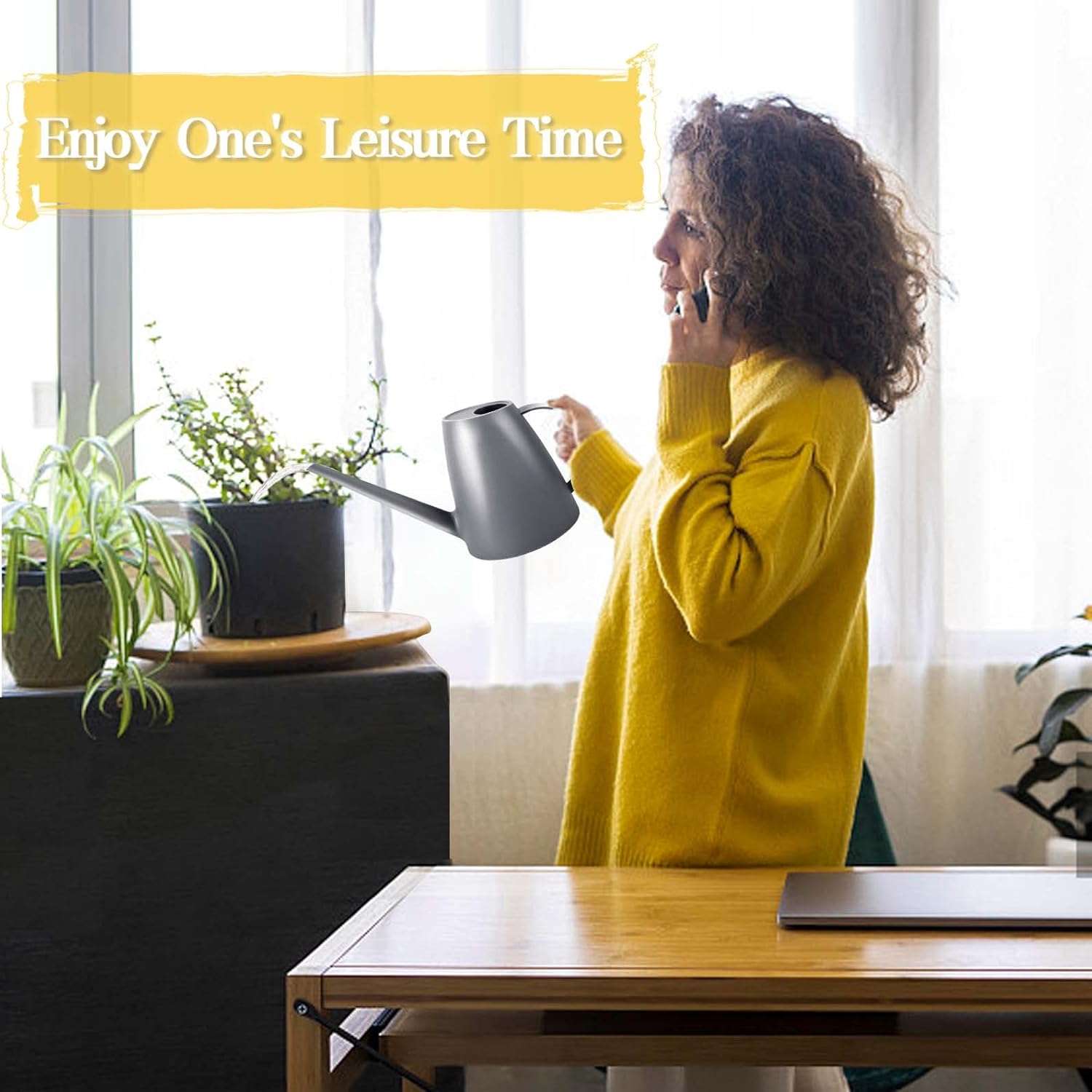 - Large Capacity, Compact Size: The mini watering can has a large 1.8L water storage capacity, making it perfect for reducing the frequency of irrigation. Its compact size makes it easy to store and use