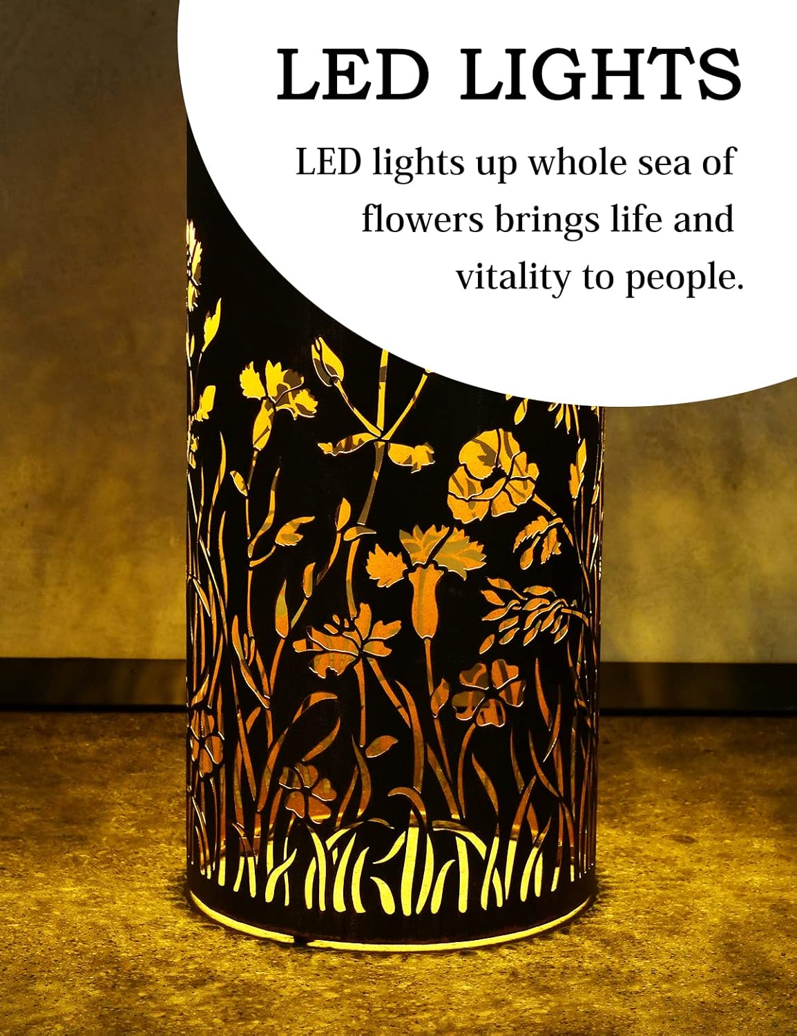 - EXCELLENT DESIGNE: Water fountains outdoor -hollow carved flower match modern ball with LED lights,seems bloom a sea of flowers in the night,brings life and vitality to people,your living room office choice.