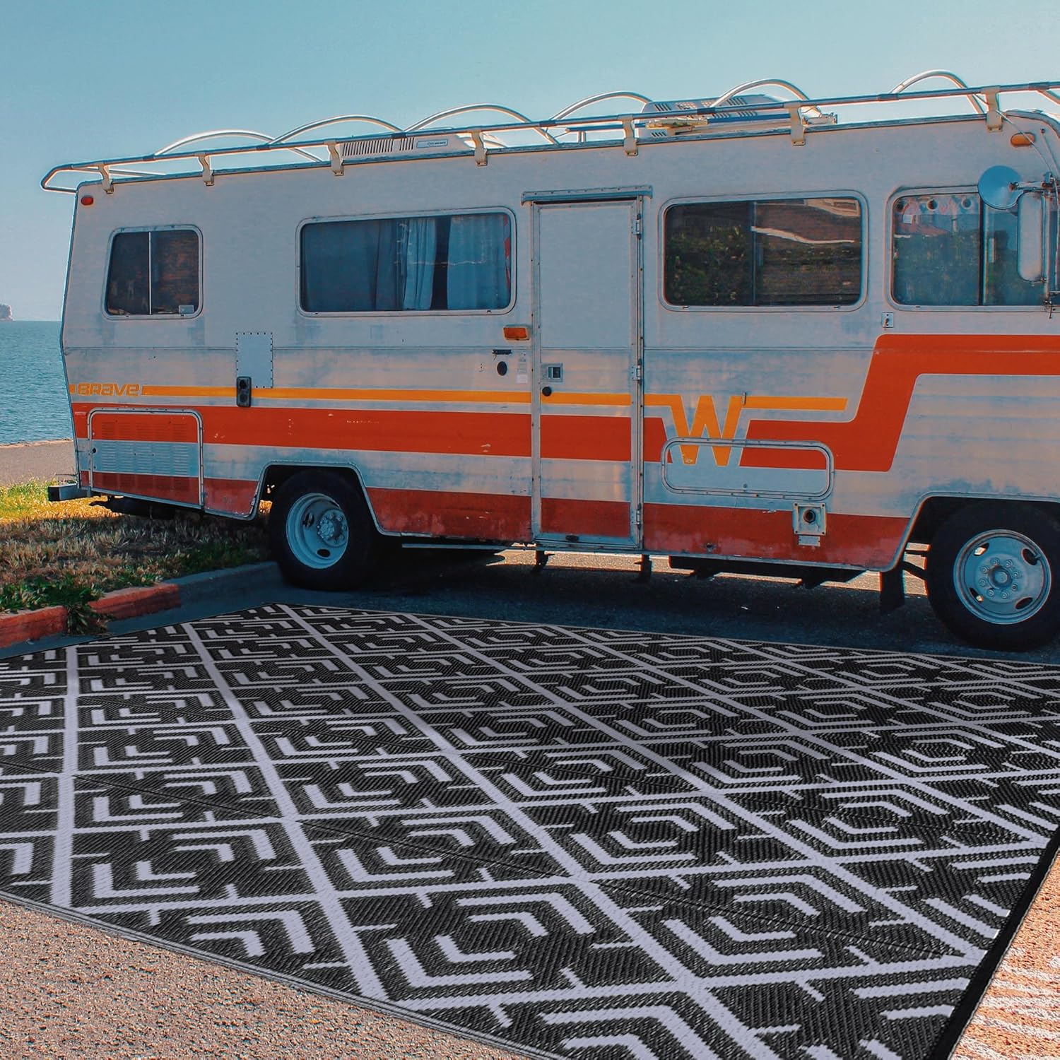 - Easy to Clean and Stain Resistant: The waterproof woven rug is quick dry and easy clean. When your pet steps with the dirt and enters the house, or when you lay out the shoes you walked outside at the door of your RV, just quickly sweep away dirt with a hose or wipe with wet cloth, then let them dry in the sun.
