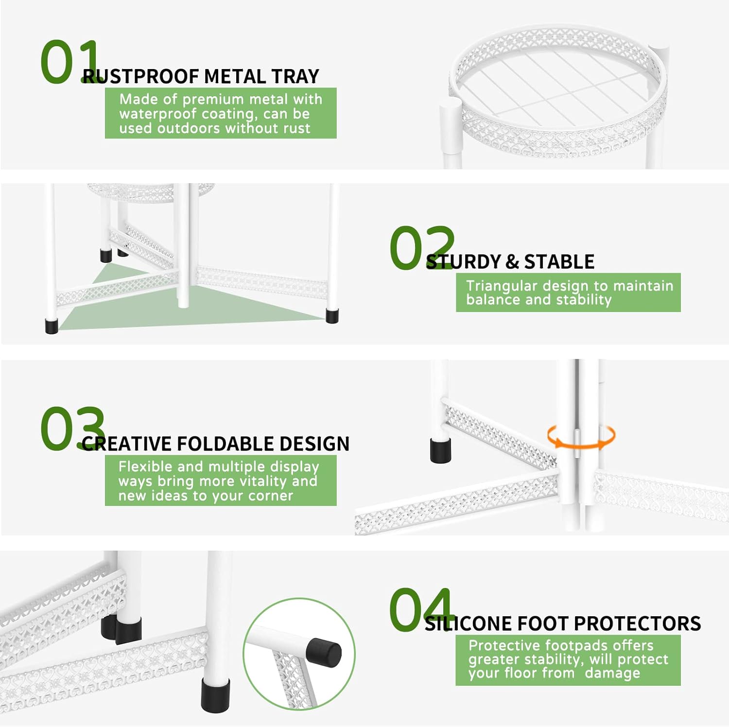 - Space-Saving Adjustable Design: The plant stand outdoor has the fixed center pole while outer legs rotate smoothly, letting you shape it to fit corners or straight spaces. It provides a flexible display that adapts easily and folds for convenient storage