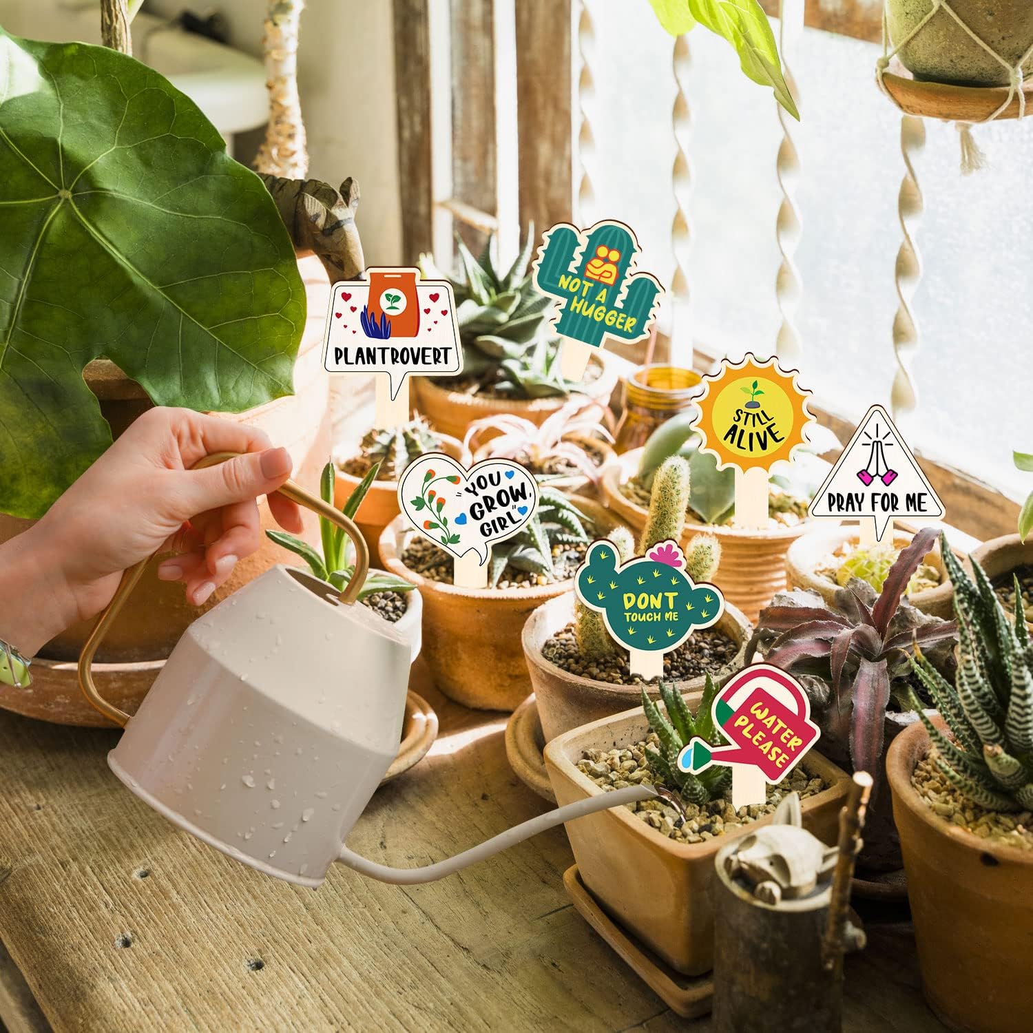 Funny Wooden Plant Labels - 15 Pack Tags for Succulents, Flowers, Greenery; Waterproof, Outdoor Garden Plant Markers; Perfect Gifts for Plant Lovers