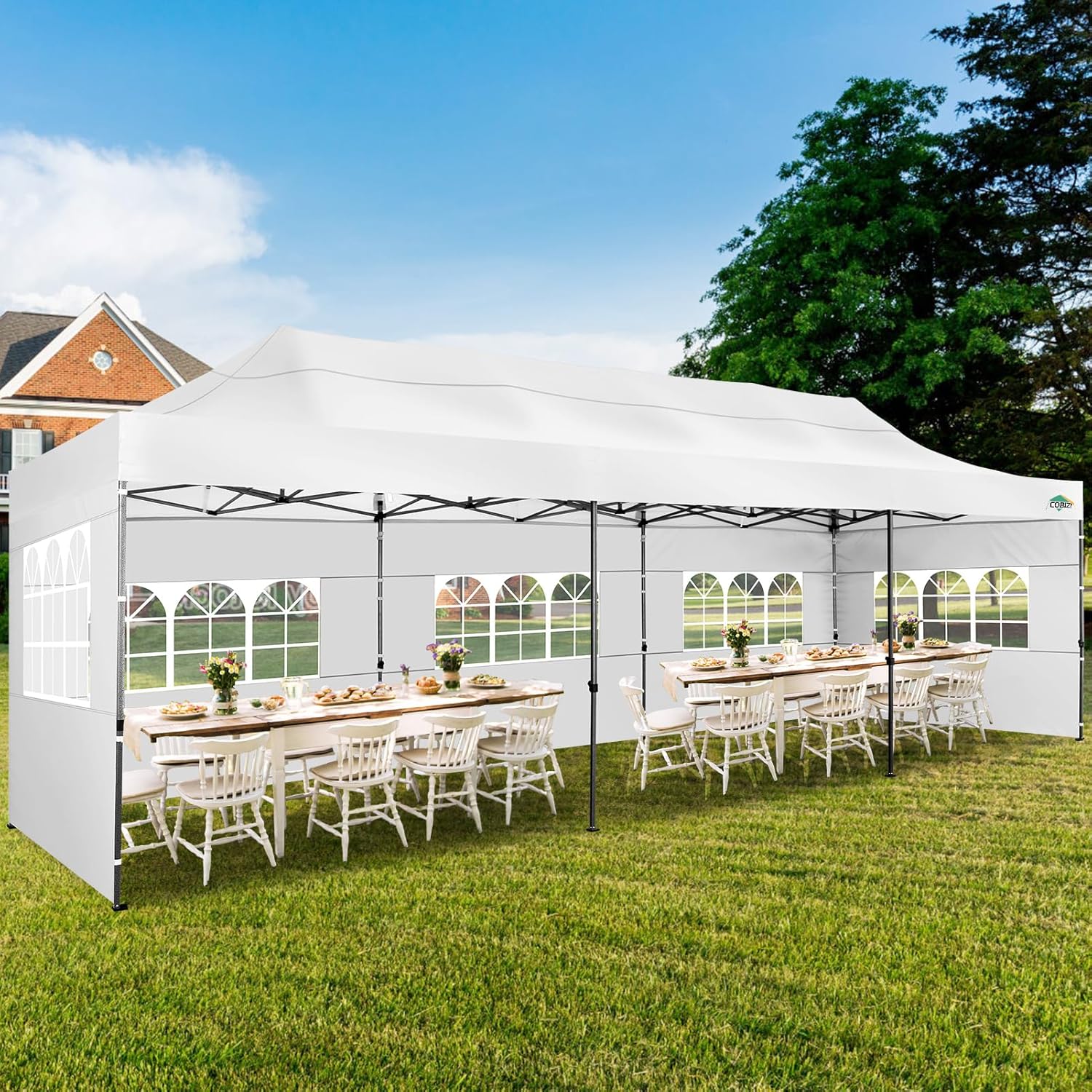 COBIZI 10x30 Pop up Canopy Tent 10x30 Canopy with Sidewalls, Heavy Duty Party Tent Tents for Parties, Foldable UPF 50+ Waterproof Commercial Easy up Canopy with Roller Bag, White(Windproof Upgraded)
