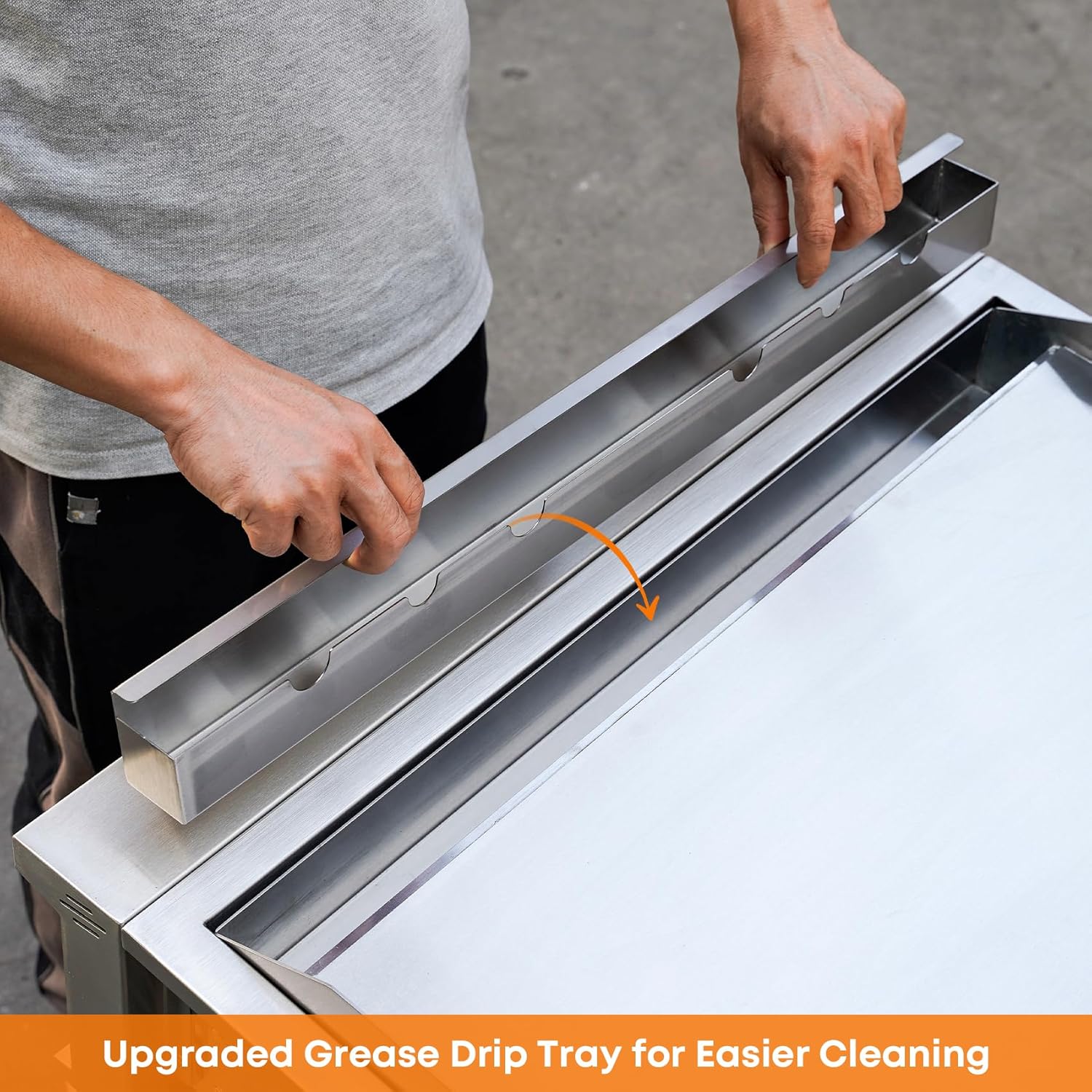 - 【Easy to Clean】 The stainless steel components and upgraded drip tray also make the griddle easy to clean and maintain.