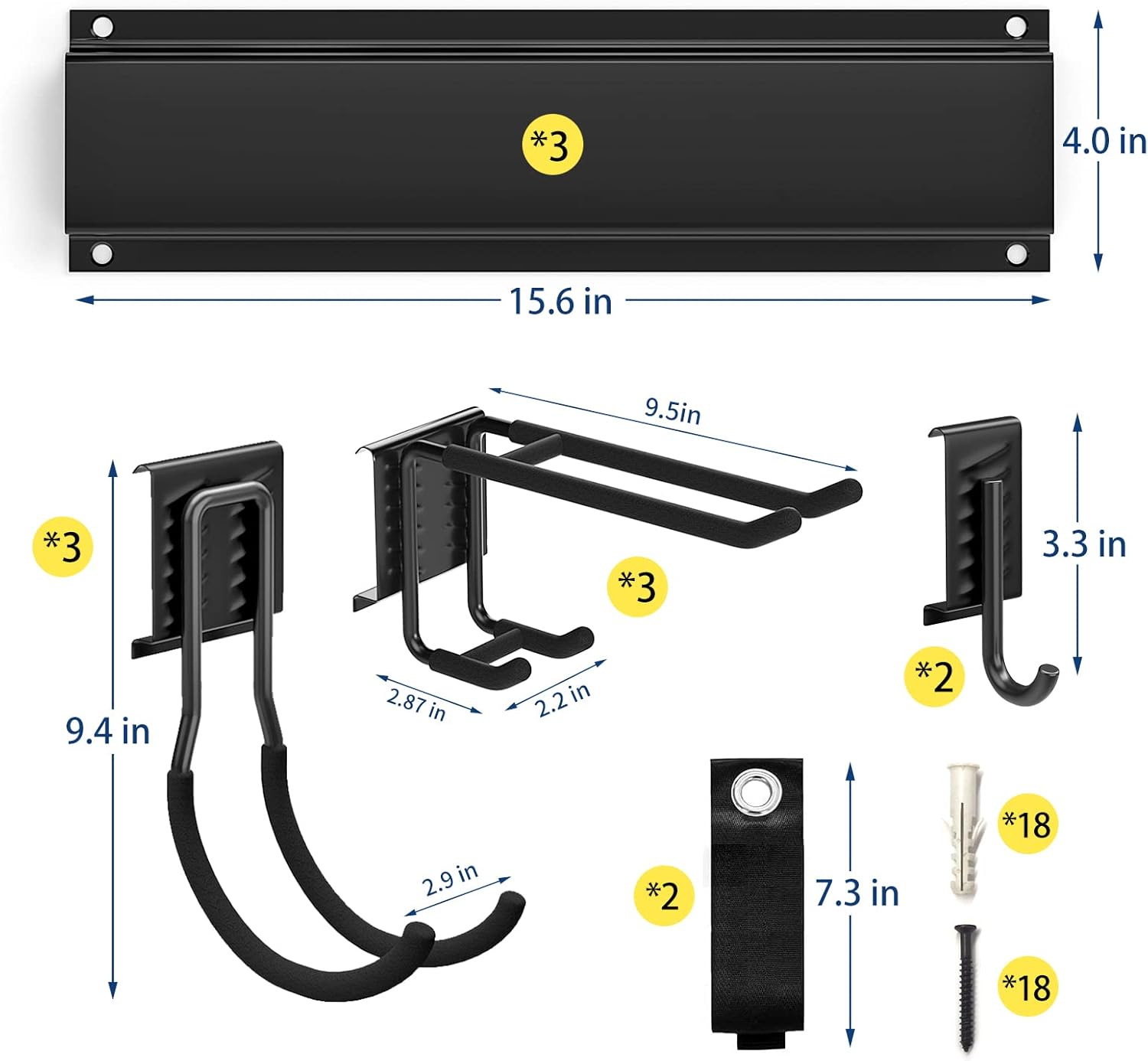 - 【Adjustable Rubber-coated Hooks】- The garage organizers and storage have 3 pcs large J hooks, 3 pcs double layer long hooks and 2 small J hooks and 2 extension straps are designed to fit all your needs. All the hooks wrapped in rubber to protect your tools from sliding and getting damaged.