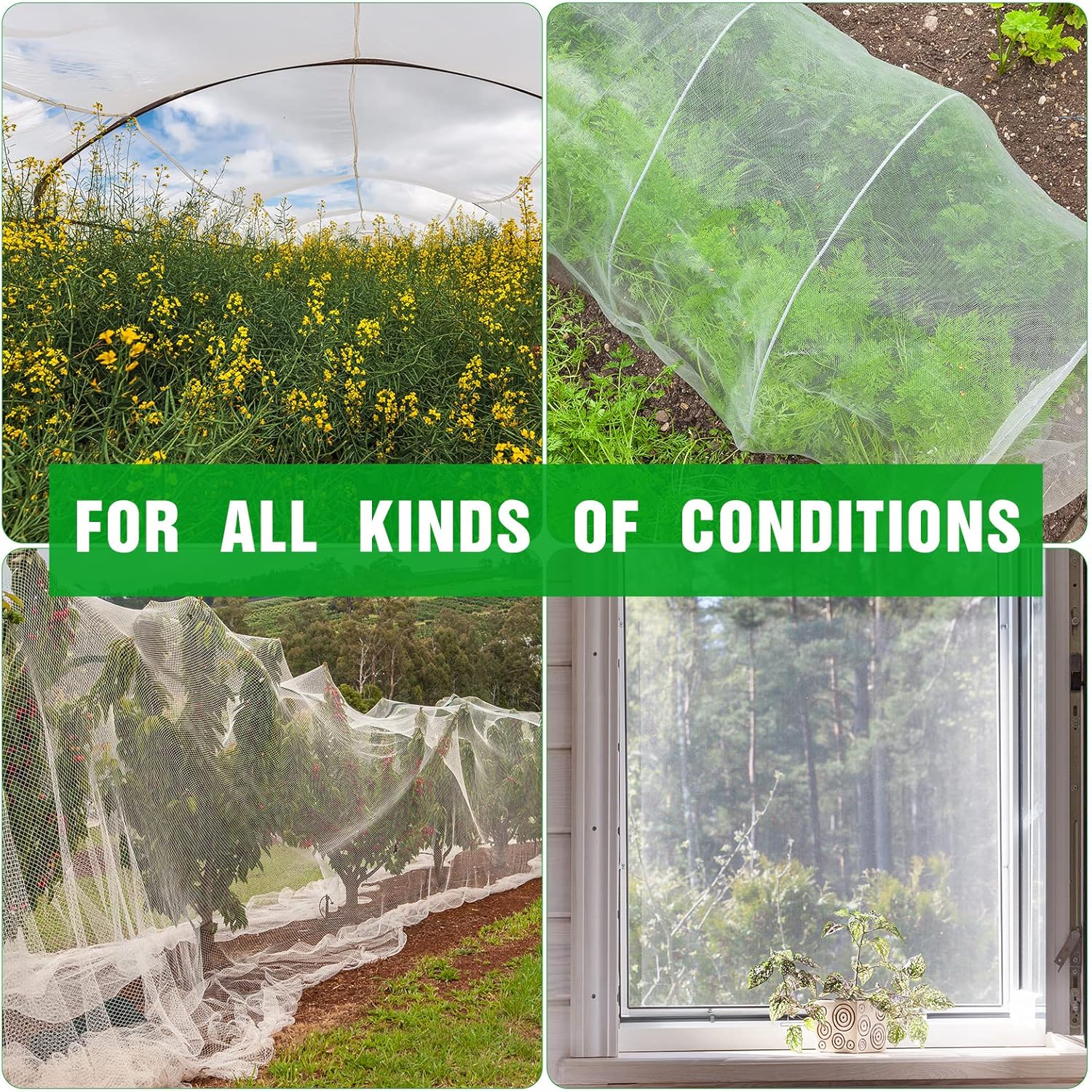 - Easy to Install and Customize: Lightweight yet tough, this insect netting for garden is simple to cut and shape to fit your specific needs; Whether covering large garden plots or smaller patio plants, it's a hassle-free solution that integrates seamlessly with hoops, stakes, or row frames