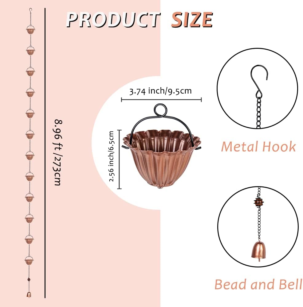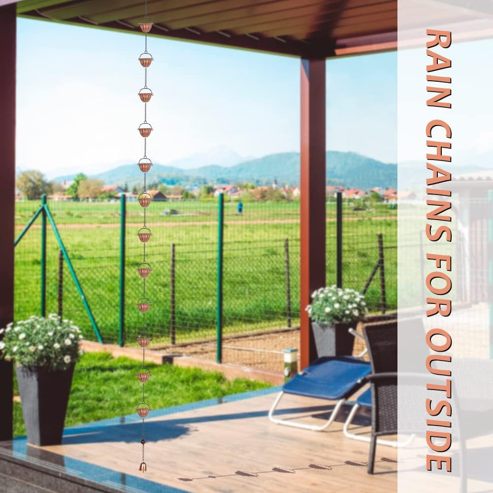 - Premium Material: The 9 feet Lotus rain catcher chain is made of excellent metal, making the rainchain stable enough and not easily broken by heavy wind and rain. Each cup is designed with a wide top mouth and narrow bottom to receive more rainwater and flow slowly along the chain