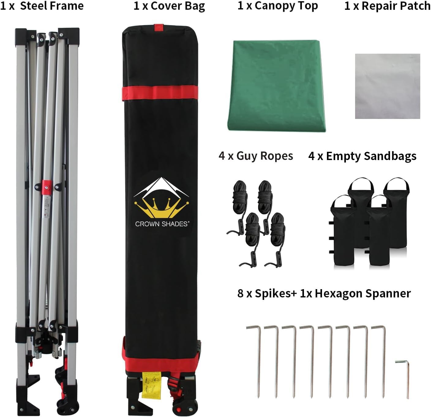 - HIGH GRADE STEEL FRAME - The durable, high-grade, corrosion-resistant steel truss frame with hardened through bolts comes pre-assembled and can be set up without any tools. Engineered to support up to 120 lbs. distributed across the frame, it ensures robust and reliable performance. The extended ceiling assembly and upgraded high peak design make it easier for rainwater to run off, preventing water pooling on the canopy. Perfect for extended outdoor use at markets, festivals, and exhibitions
