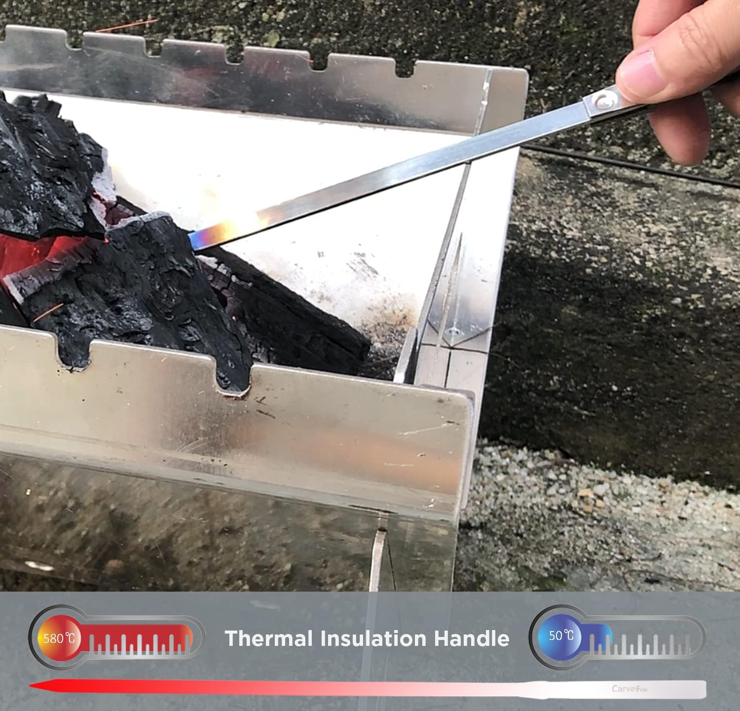 - The Innovative Thermal Insulation Handle Design: Won't Burn Your Fingers When Grabbling The Handle, As A Bonus, The Carvefun Kebob Skewers Set With A Food Removal Bag And A Exquisite Carrying Pouch ,Use The Food Removal Bar To Slide Food Off The Skewer When Kebabs Are Finished Grilling Works In The Oven, Charcoal, Gas, And Portable Grill- Fire And Heat-Resistant The Heat-insulated Handles Don’t Get Hot