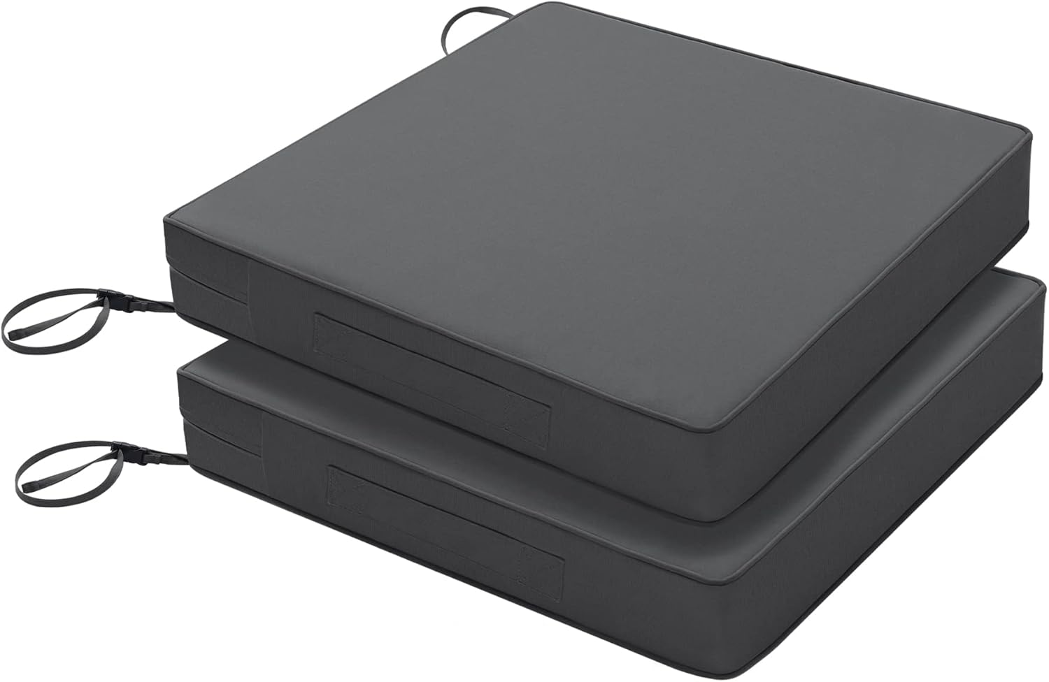 Favoyard Patio Chair Cushions 17 x 16 x 2 Inch Waterproof Outdoor Seat Cushions for Patio Furniture 3-Year Color Fastness Garden Sofa Couch Pads with Handle & Adjustable Straps Set of 2, Dark Grey